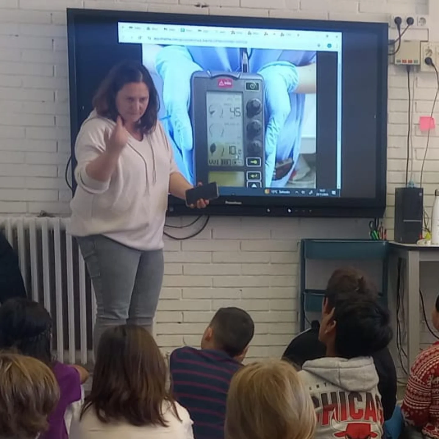 Avui la classe dels Elèctrics i elèctriques hem rebut una visita molt especial. La Sara, mare de l’Unai, amb anys d’experiència treballant a l’UCI de cardiologia de l’@hbellvitge , ens ha preparat un taller molt interessant sobre el Sistema Nerviós i l’ús de l’electricitat en l’àmbit sanitari: desfibril·ladors, marcapassos, … Moltes gràcies Sara!!! El teu entusiasme i coneixements ens ajudat molt en el nostre projecte!!