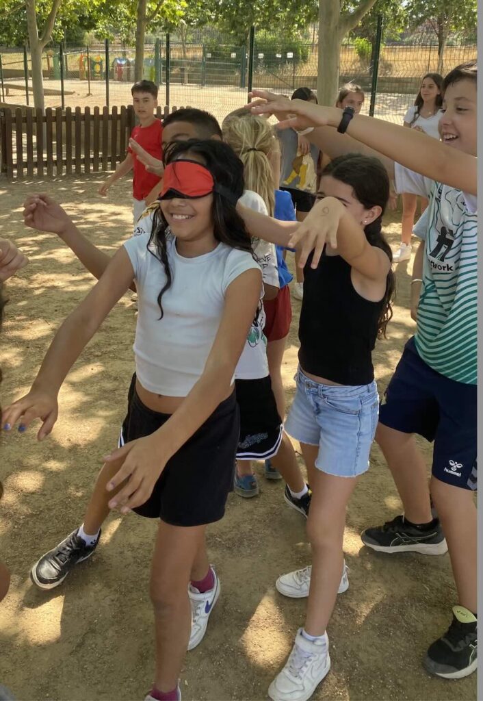Dimarts hem continuat amb una activitat molt vivencial al pati: una sèrie de jocs adaptats que han permès a l’alumnat experimentar algunes de les dificultats amb què es poden trobar les persones amb diversitat funcional. Fer un recorregut amb els ulls tapats, jugar amb restriccions de moviment o comunicar-se sense parlar són només alguns exemples que han despertat empatia i han generat moltes converses valuoses.