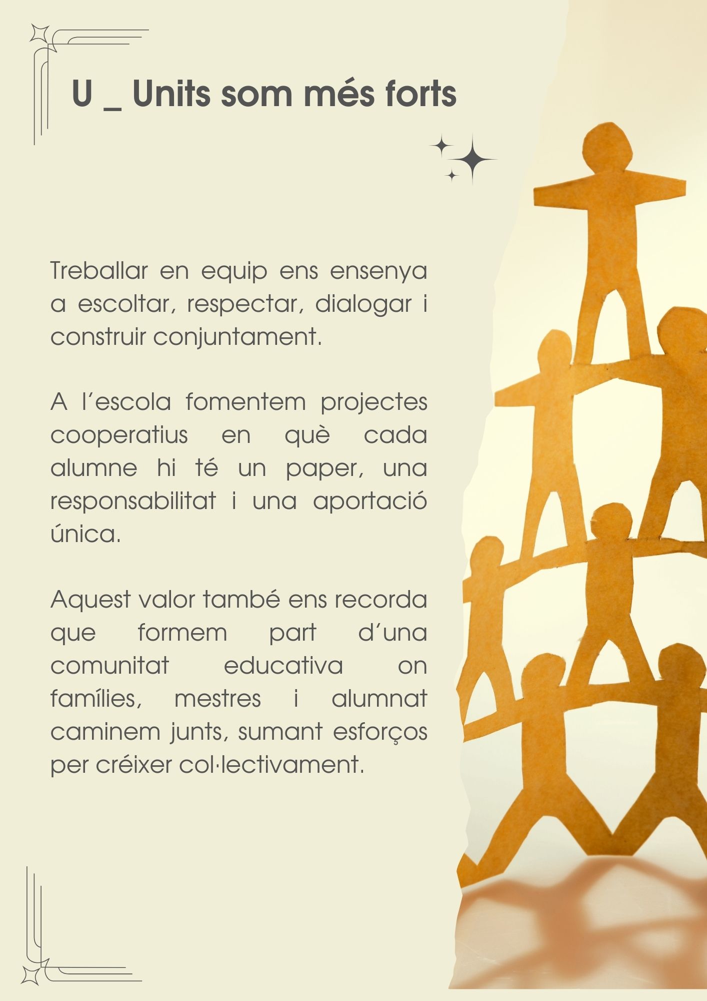Iniciem un projecte molt personal: el recull dels valors que defineixen el projecte Educatiu del centre. A través dels delegats dels diferents cursos, anirem introduint mensualment diferents consignes per tal que l’alumnat interioritzi diferents actituds i valors que els serviran de guia al llarg de les seves vides.