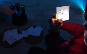 Per aquest projecte han tingut que preparar una de les aules amb material més específic, com son les taules de llum, pintura luminescent, llum fluorescent, retoladors fluorescents, llanternes, etc.