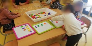 A l’hora del treball per ambients, els infants poden circular lliurement pels ambients oberts durant el dia, tenint en compte que si ja hi ha el nombre d’infants establert a un dels ambients, hauran d’anar a un altre. Aquest fet es controla posant a la porta el número de xiquets que poden entrar i amb un velcro van apegant els noms dels que van a cada ambient, obligant-los a observar i comptar per veure si poden o no accedir.