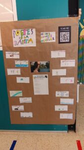 A cicle mitjà, l’alumnat de 3r va realitzar una activitat molt innovadora: cada alumne va llegir i gravar una part del poema i, a través d’un codi QR, es pot escoltar el poema recitat pels mateixos alumnes. D’aquesta manera, es va treballar la lectura en veu alta, l’expressió oral i l’ús de les noves tecnologies.