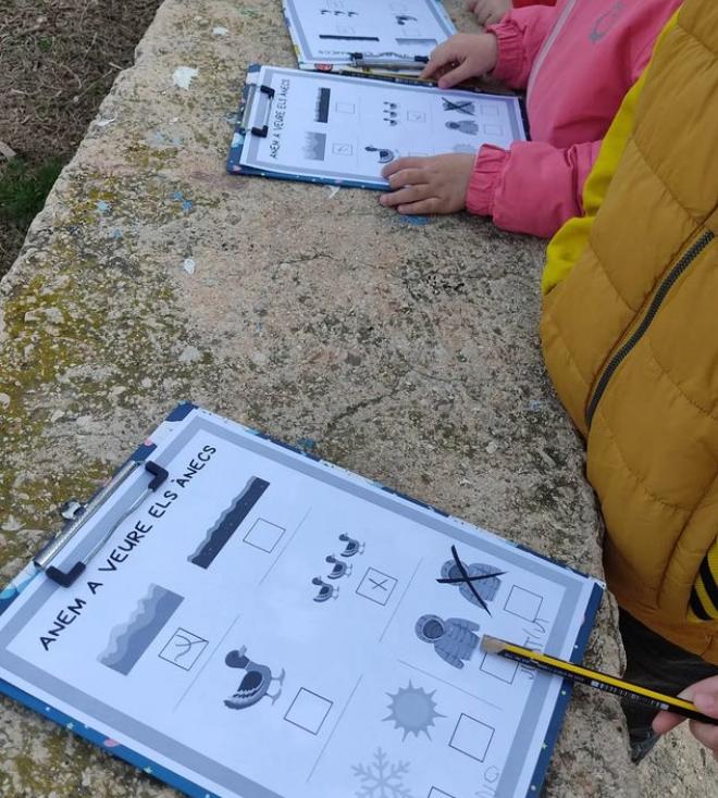 Vam fer una sortida per anar-ho a veure en directe al canal prop de l’escola. La sorpresa va ser quan els alumnes van veure’ls a l’aigua tot i fer fred. Tot seguit, els infants, per parelles, van respondre una enquesta observant si estan a l’aigua o al terra, si van sols o junts amb més ànecs, si tenen calor o fred i si porten jaqueta o no.