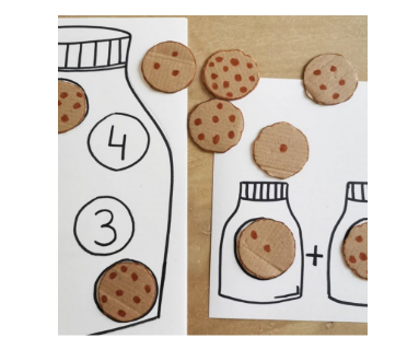 - I SI HO VOLS POSAR UNA MICA MÉS DIFÍCIL…POTS DIBUIXAR EN UN ALTRE FULL TRES POTS. ELS DOS PRIMERS SERAN LES “COOKIES” QUE HAS DE SUMAR I L’ÚLTIM POT SERÀ EL RESULTAT D’AQUESTA SUMA.