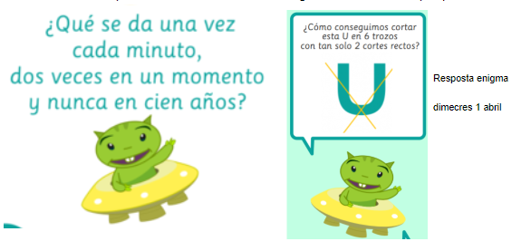 02/04/20Bon dia noies i nois de 4t! Aquí us deixem la solució de l’enigma d’ahir i un altre per pensar durant el dia d’avui: