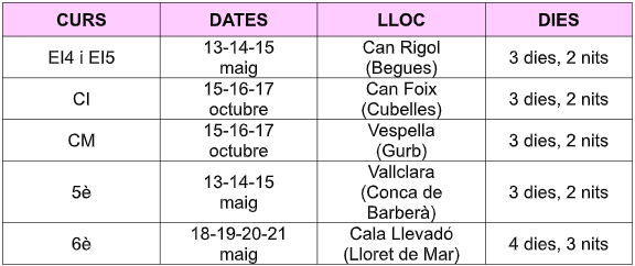 DATES COLÒNIES CURS 25-26