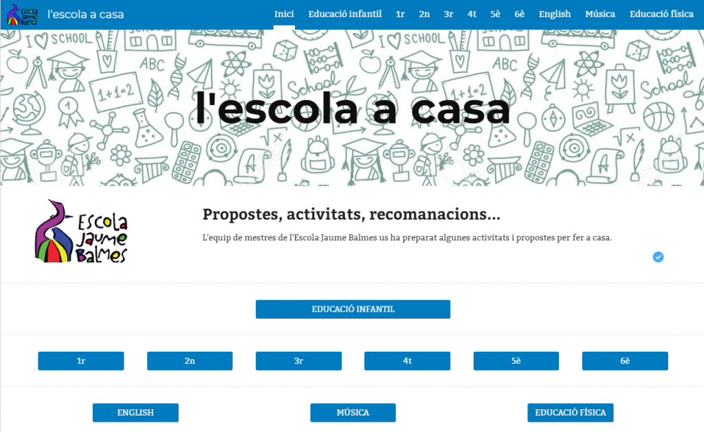 Entra a l’espai L’ESCOLA A CASA on trobaràs activitats que us proposem per aquests dies. Mestres de l’escola.