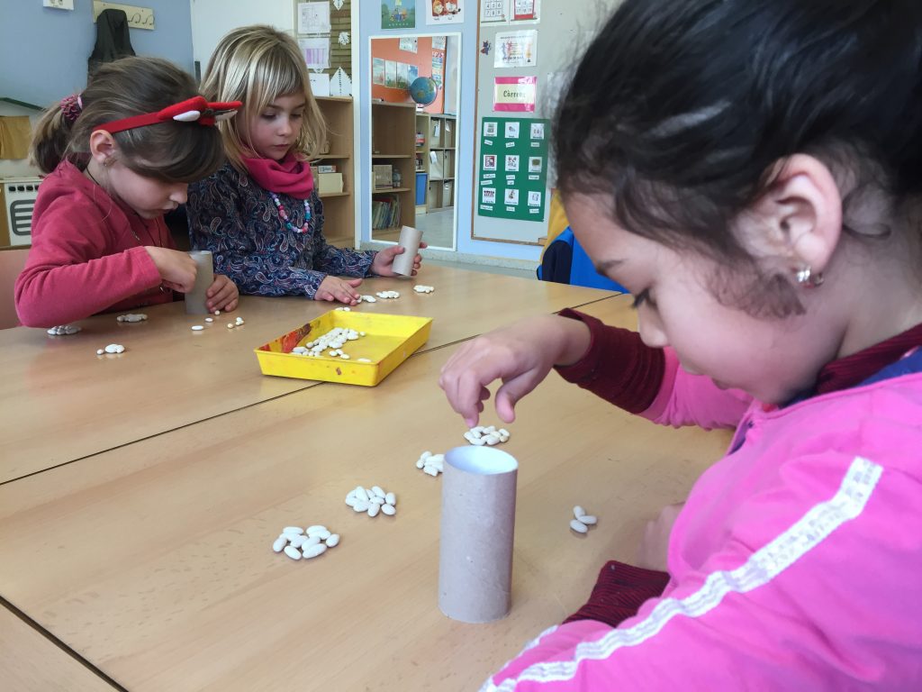 A primer hem començat a treballar la desena i la unitat. Aquest concepte és una mica abstracte i a vegades, costa d’entendre. Per aquest motiu ho treballem de manera manipulativa. Allò que toquem, mirem, sentim… ens ajuda a visualitzar d’una manera més clara el que s’ha de treballar i integrar-ho més significativament. A més a