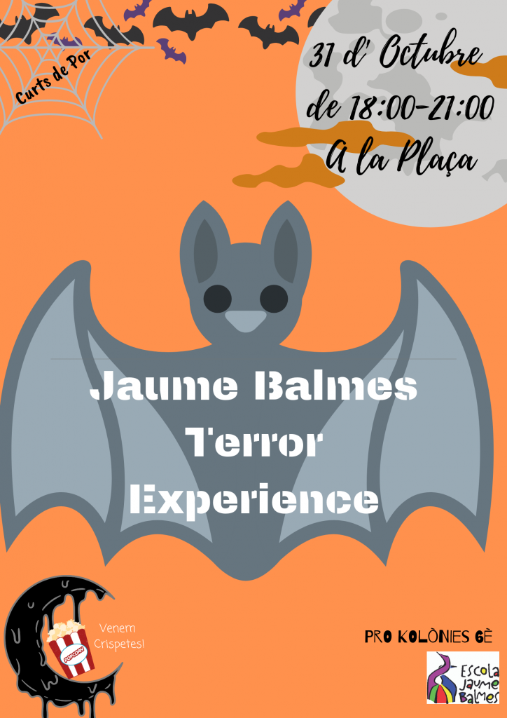Avui us convidem a la plaça a viure una experiència terrorífica! Curts de terror per diferents edats, maquillatge, crispetes i també berenars! 18:00-18:30 terror per infantil 18:30 – 19:30 Terror per primària 19:30 – 20:30 Terror XL. Veniu i col·laboreu!