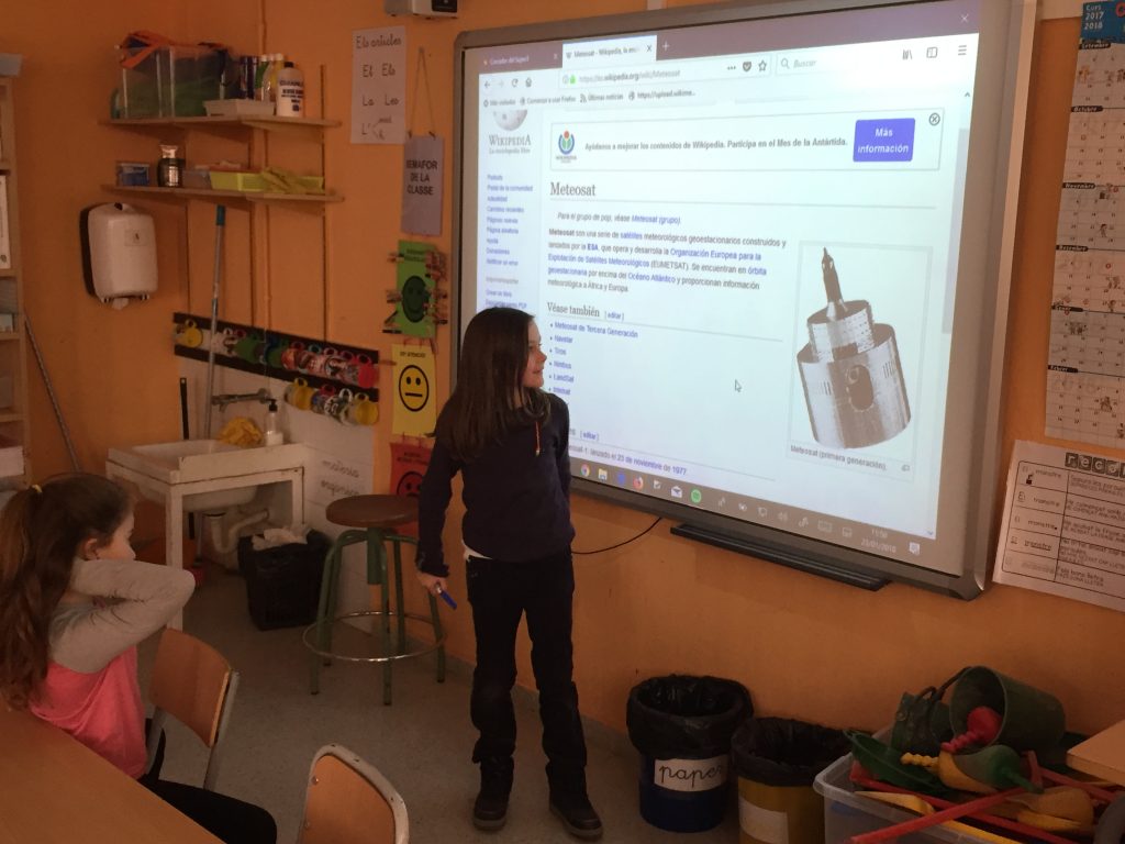 L’alumnat de 2n hem començat un nou projecte de medi: “El món on vivim”. Aprofitant la curiositat que ens inquieta per aquest nou tema, alguns alumnes de 2nA s’han interessat en saber què és el satèl·lit Meteosat i ho han volgut explicar a la resta de companys i companyes.