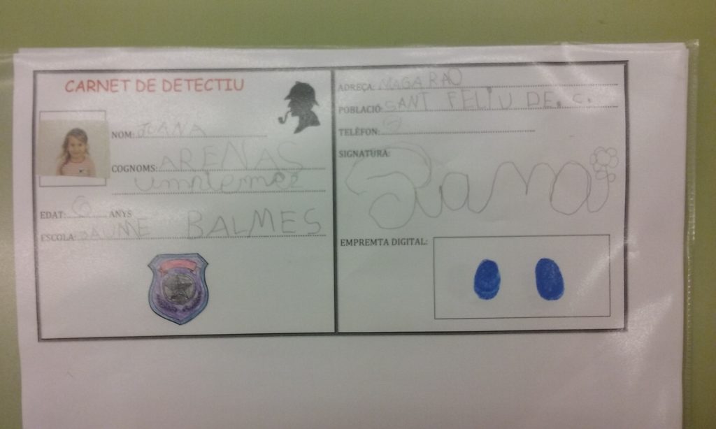 Per a poder investigar a tot arreu, ens hem fet un carnet de detectius, amb les nostres dades personals, la nostra fotografia i les nostres empremtes digitals.