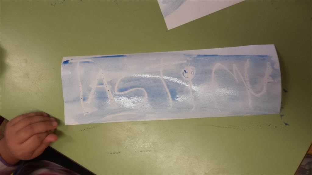 Avui hem provat una de les maneres d’escriure un missatge secret. Hem escrit amb cera blanca sobre paper blanc un missatge per un altre company de la classe. Per descobrir els missatge hem pintat amb pintura aigualida sobre i…..txaaaaaan!!!! Missatge descobert!!!