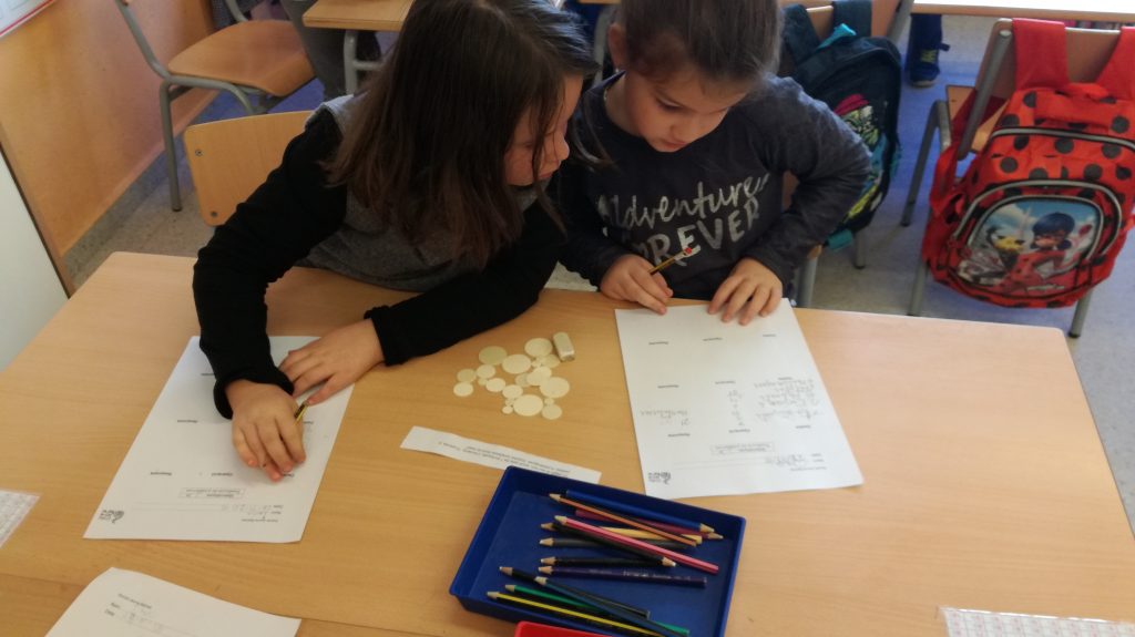 Treball de resolució de problemes Feu un comentari / Per Segon B / 29/11/2018 / 2n Comunitat de grans Portada A l’aula, els nens i nenes, per parelles, treballem la resolució de problemes amb materials manipulatius. dav dav