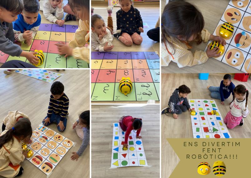 Aquest trimestre hem incorporat un nou ambient a infantil, L’AMBIENT DE ROBÒTICA. En aquest ambient aprenem a pensar, a practicar l’assaig/error i a desenvolupar l’hàbit de la perseverança. Tenim dos tipus de robots: les Bee-Bots i el Tale-Bot Pro. Per fer funcionar aquests robots i fer-los anar a on desitgem, hem de comptar, predir, calcular i imaginar. Gràcies a tot això, treballem i desenvolupem les capacitats i competències matemàtica i digital.