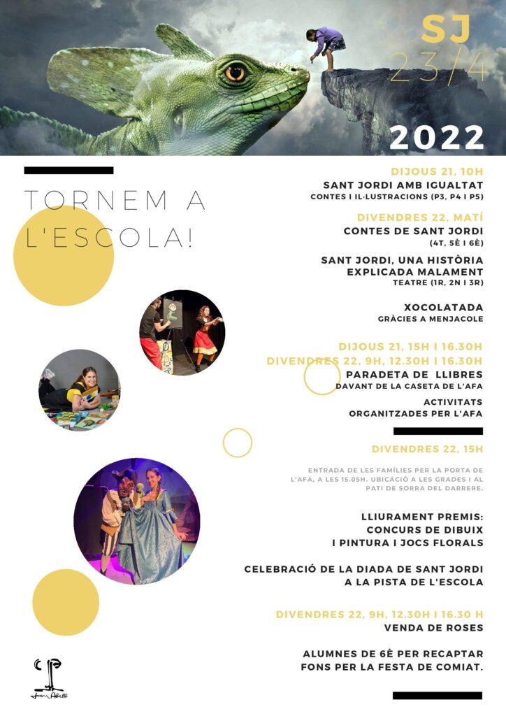 Un cop més celebrem el Sant Jordi a l’escola però enguany ho fem obrint les portes a les famílies altre cop! Us mostrem els dibuixos i textos que han estat seleccionats i divendres 22 d’abril a la tarda farem saber dels guanyadors i guanyadores i farem entrega de premis. L’acte es farà a la