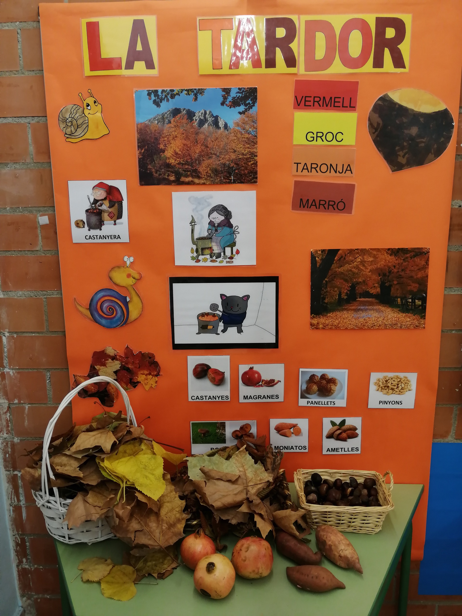 Durant aquests dies estem treballant LA TARDOR mitjançant cançons, balls, contes, dites, etc. Gràcies a la vostra col·laboració hem creat el racó de la tardor amb els fruits que ens heu portat: castanyes, raïm, magranes, moniatos…