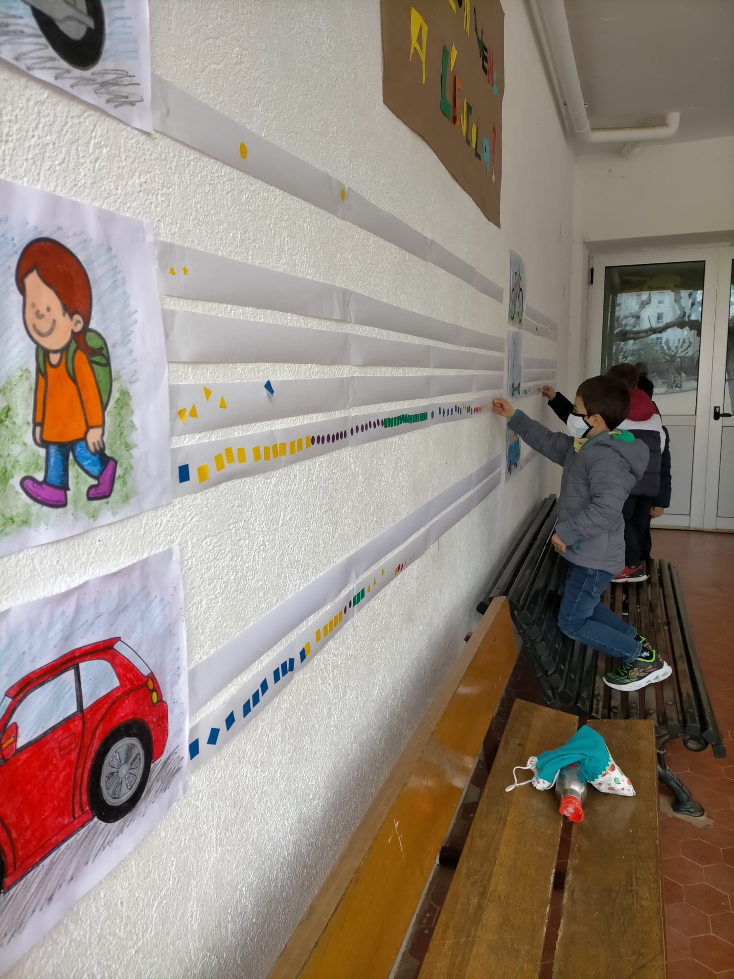 Durant la setmana, cada dia, tots els alumnes marcaven amb un gomet quin era el mitjà de transport que havien utilitzat per arribar a l’escola: A peu, patinet, bicicleta, moto, cotxe compartit i cotxe.