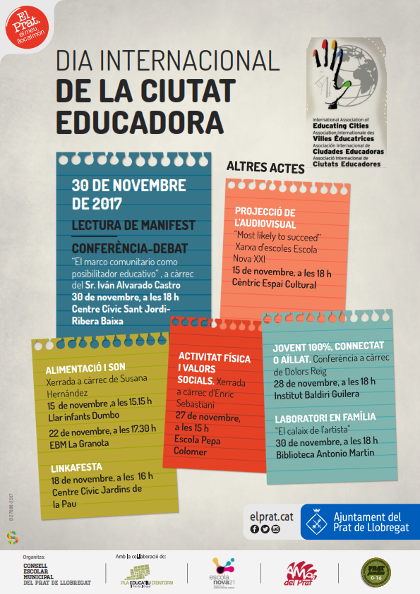 El proper 30 de novembre és el Dia Internacional de la Ciutat Educadora. Des del Consell Escolar Municipal s’ha organitzat una taula rodona per parlar-ne sobre la importància del marc comunitari a l’entorn escolar vist des dels ulls d’una Direcció, la representació d’una AFA/AMPA i d’una entitat pratenca.