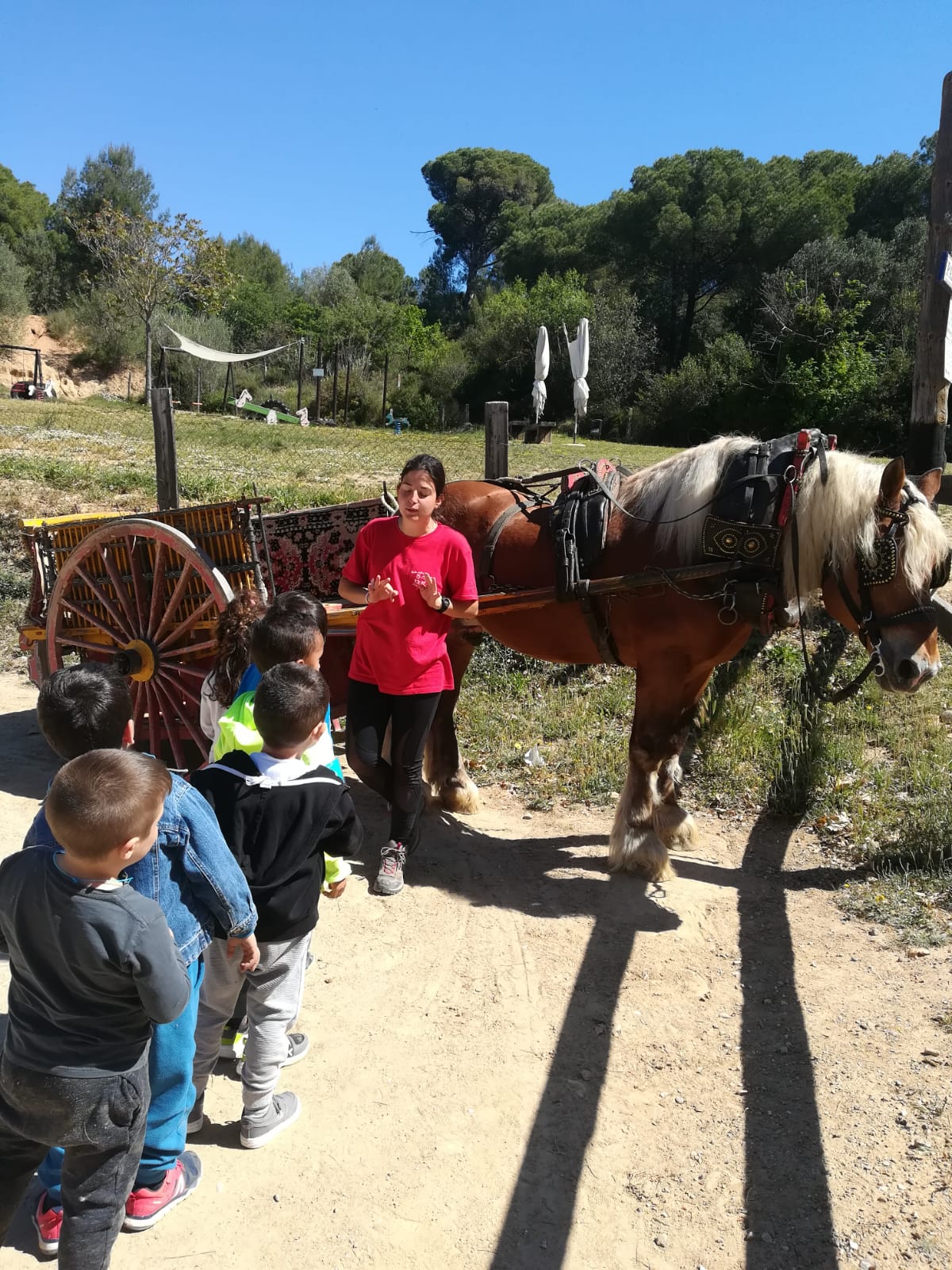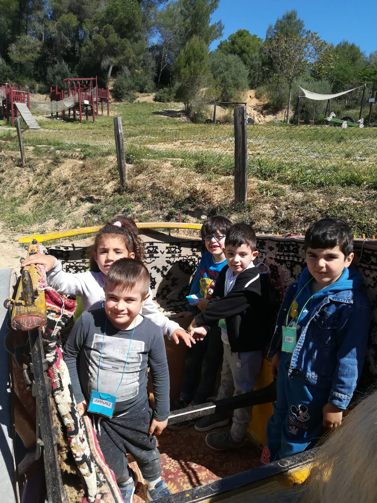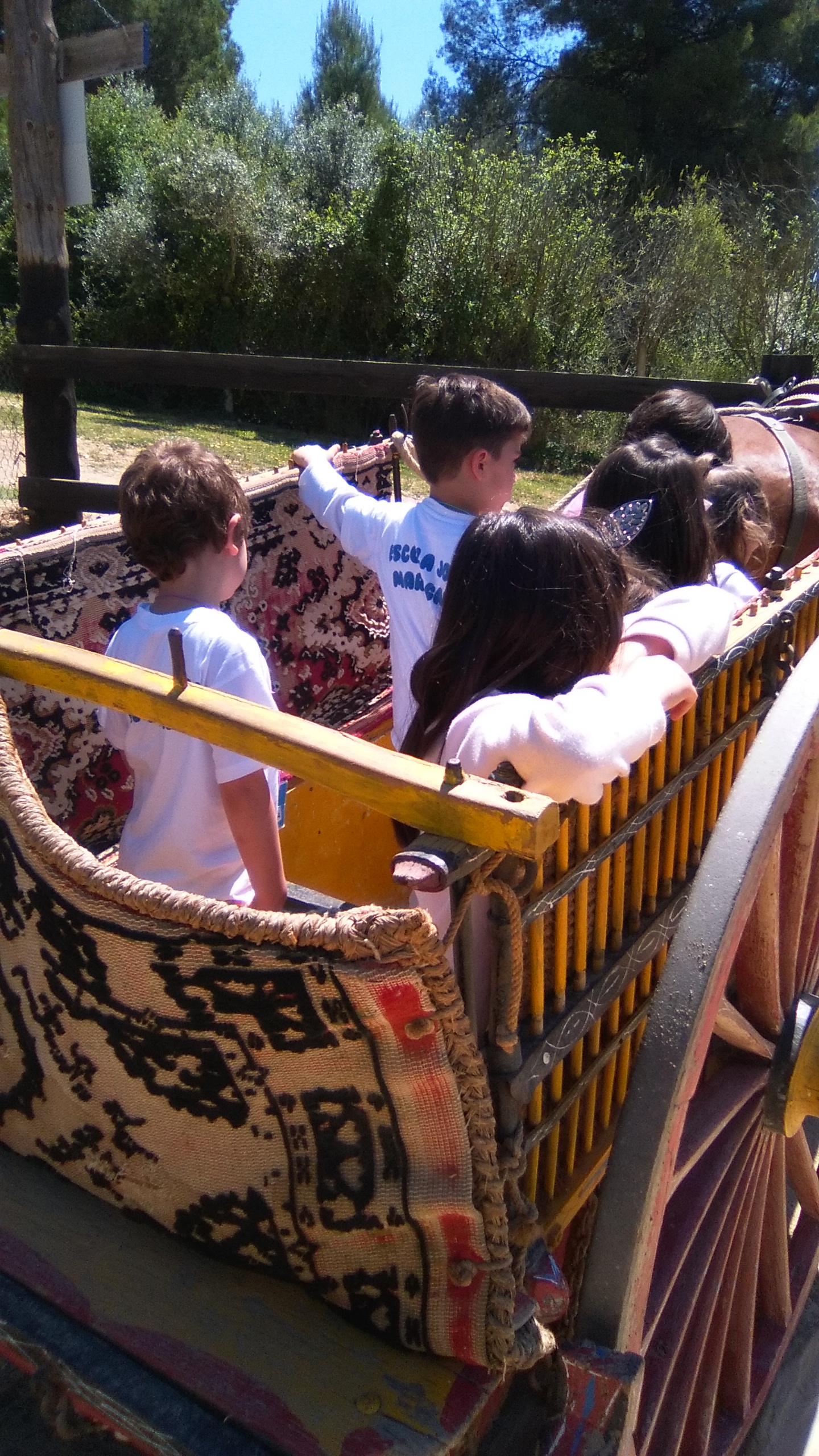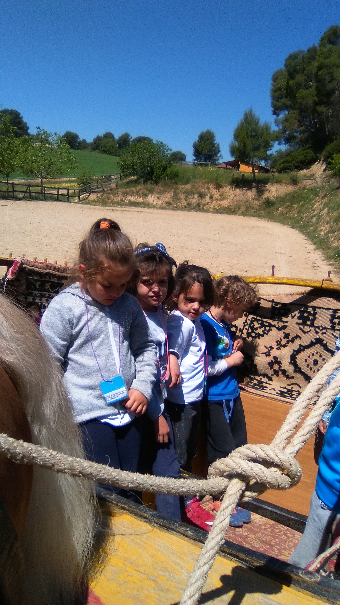 VAM PUJAR A CAVALL, TAMBÉ EN UN CARRO, VAM TOCAR ANIMALS: CONILLS, CABRETES, OVELLES, PORQUETS, UNA VACA, UN ASE I EL SEU FILLET, UN PONI,…