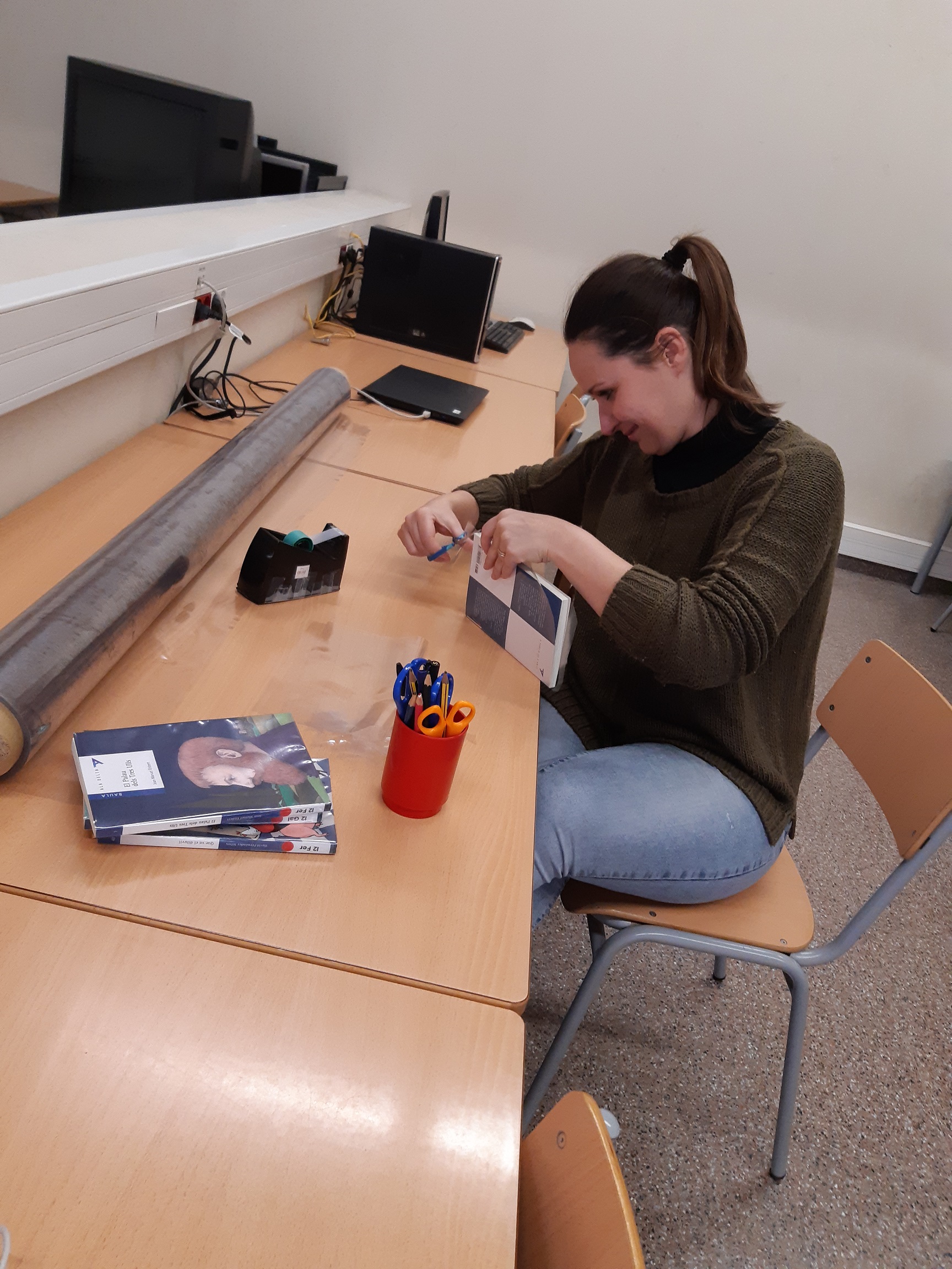 Amb el suport i l’ajuda de moltes famílies voluntàries de l’escola que venen setmanalment a la biblioteca, hem aconseguit folrar i catalogar gairebé 1200 llibres! Gràcies de tot cor!
