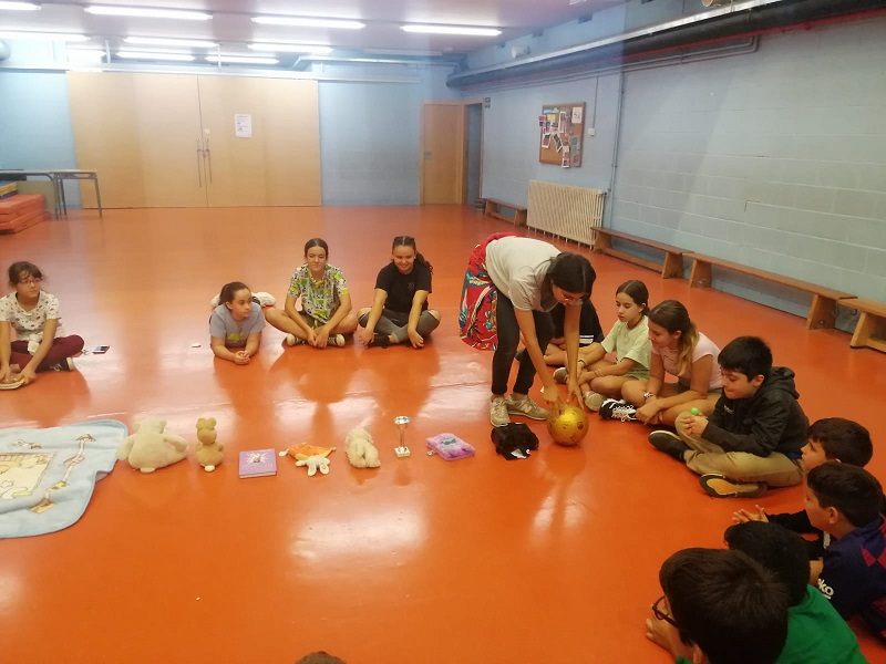 Enguany comptem amb la Laura, mestra de teatre de l’Escola d’Arts en Viu de la ciutat, la qual ve setmanalment a les classes de 1r, 5è, 6èA i 6èB a ajudar-nos a treure’ns la por, a construir el procés creatiu i a aproximar-nos a les tècniques teatrals. És un goig viure l’activitat a l’escola.