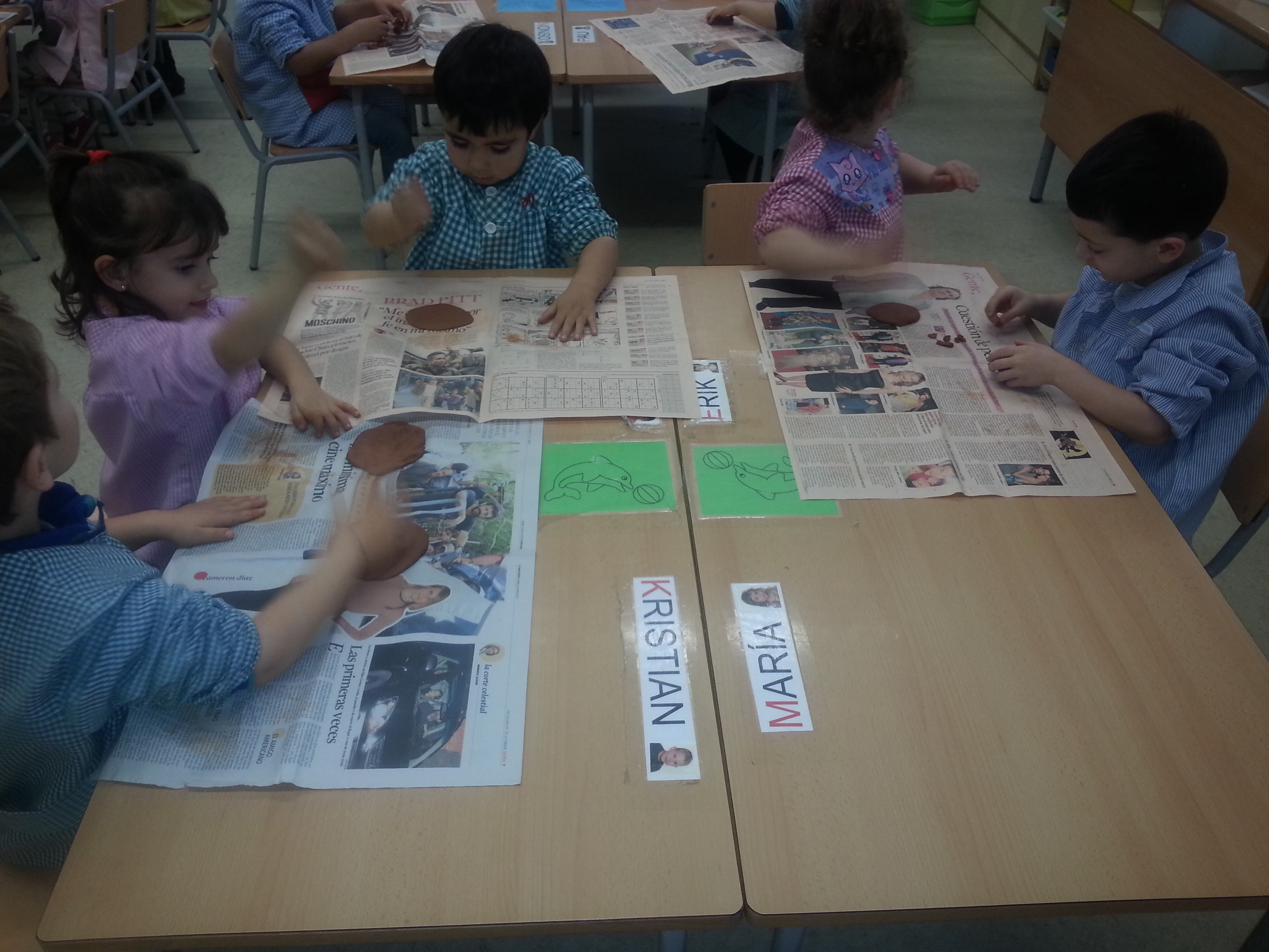 En el primer taller del segon trimestre hem experimentat per primera vegada amb el fang…hem fet cargols i després els hem pintat amb pintura.