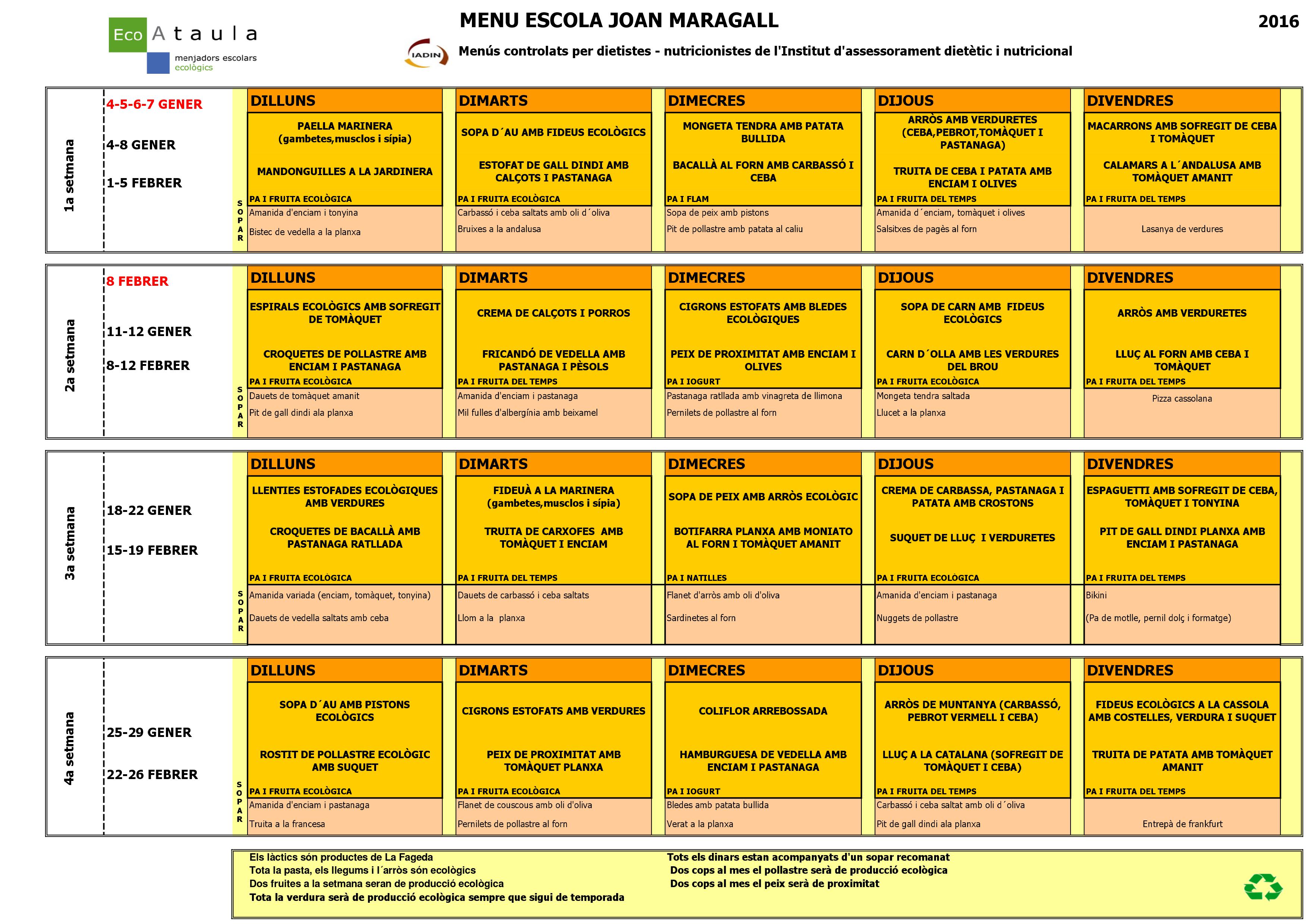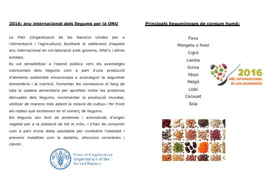Us presentem els menús del servei de menjador dels mesos de gener i febrer juntament amb una informació relativa a aquest any que per a l’ONU serà l’any internacional de les llegums.