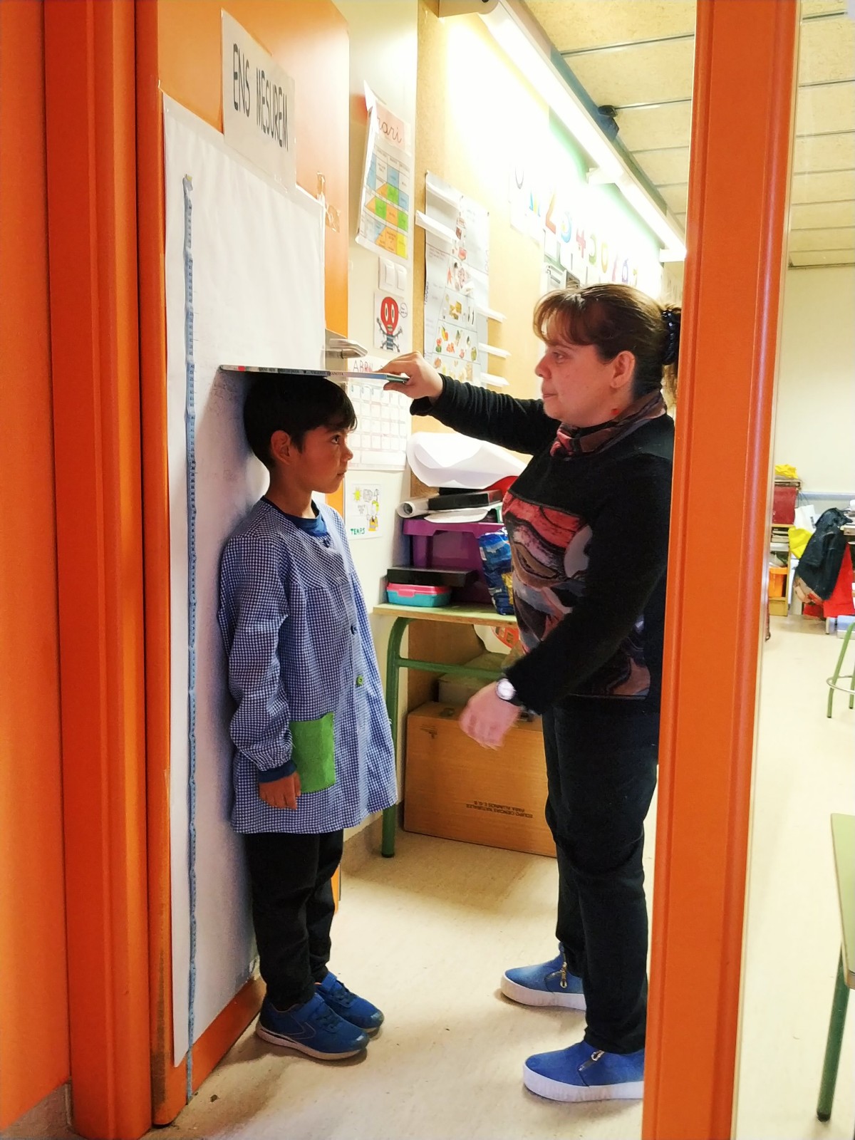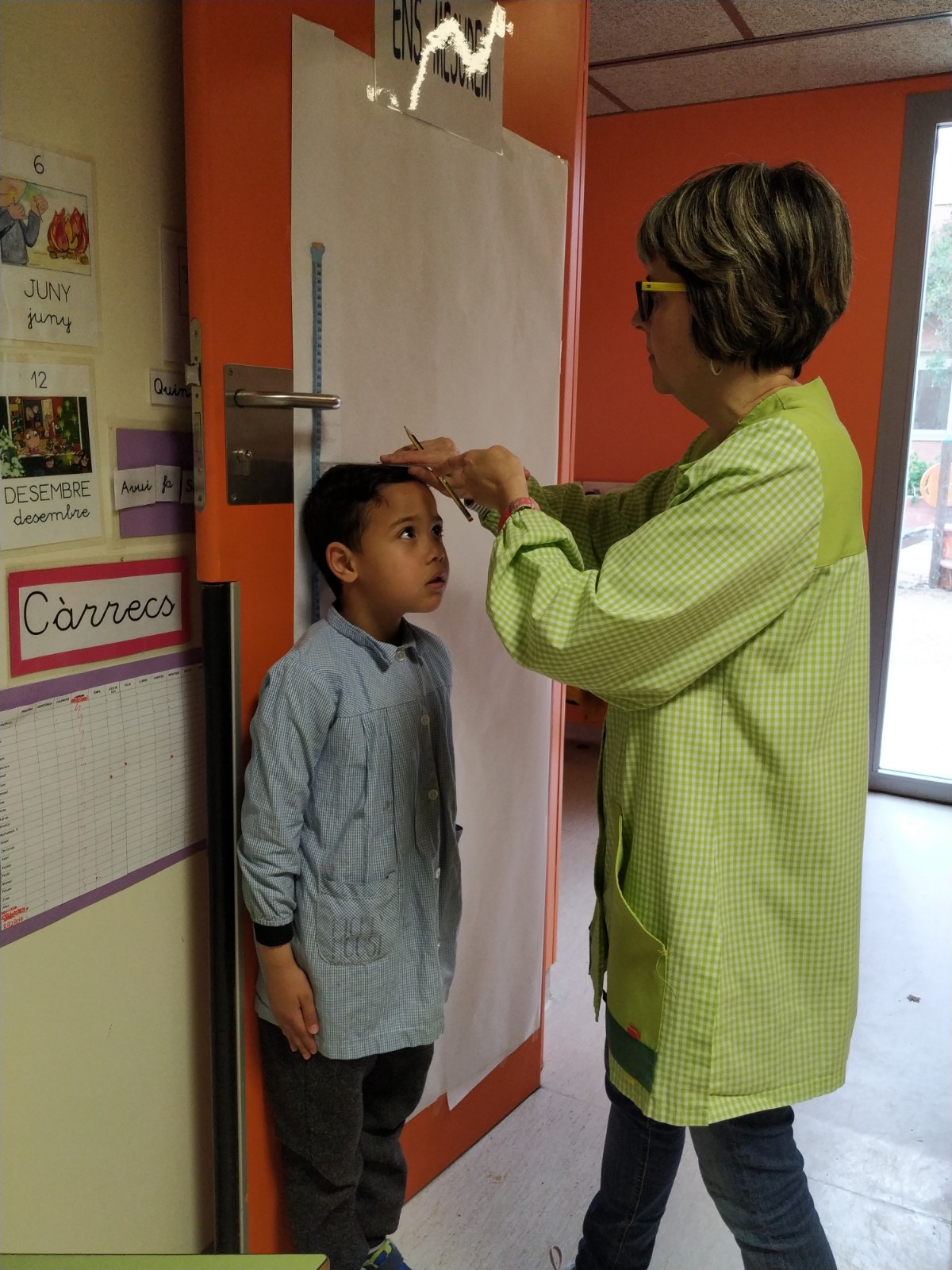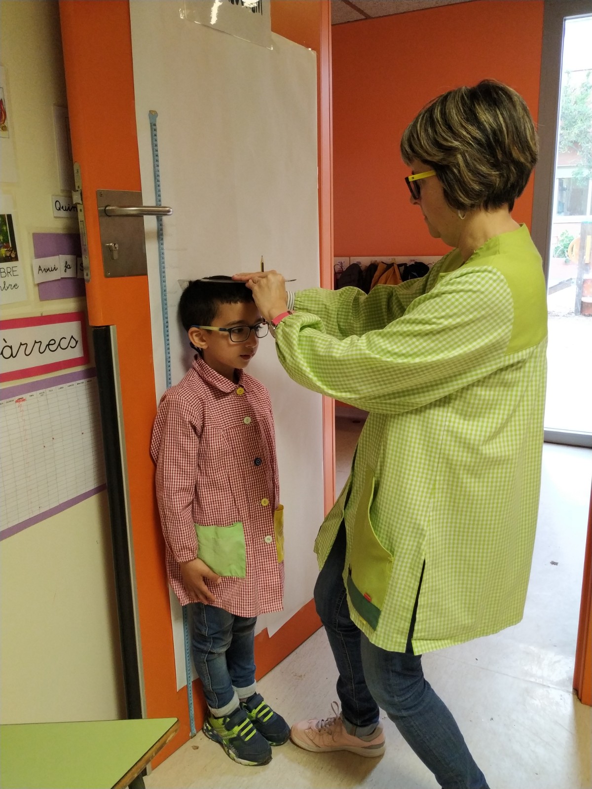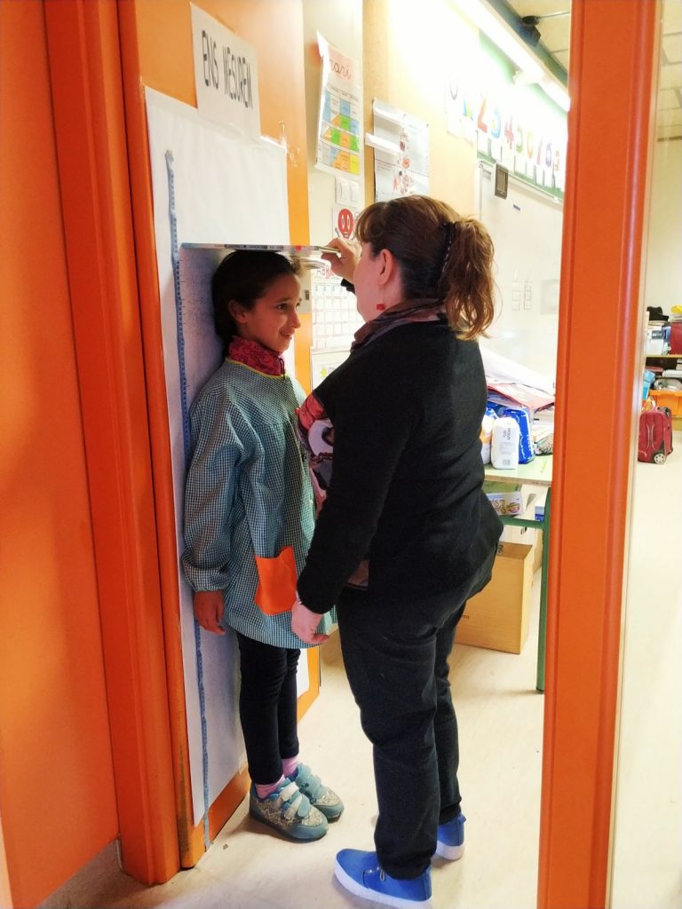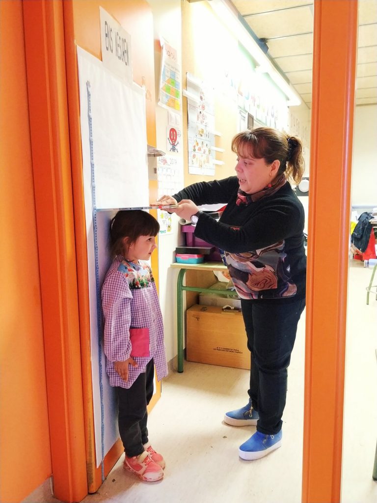 Primer hem mesurat alguns objectes de la classe com ara un llapis, un llibre… Després ens hem mesurat tots amb una cinta mètrica. Hem pogut observar que uns som més alts i uns més baixets, però que això no és important. Cadascun de nosaltres és únic i molt especial.