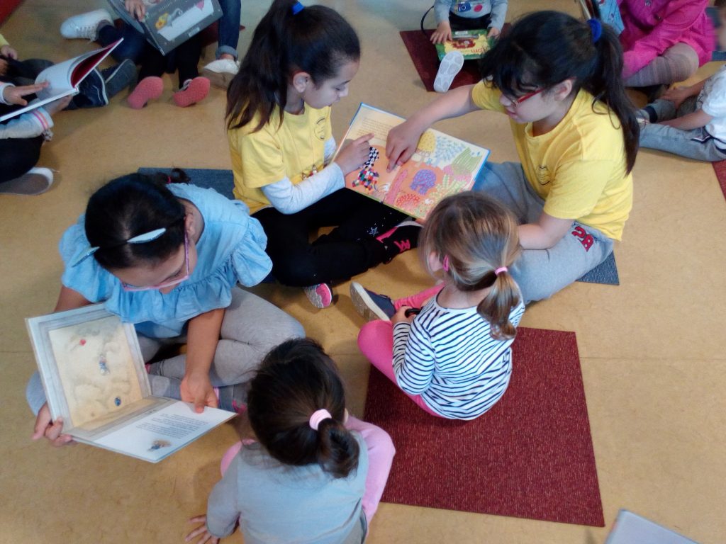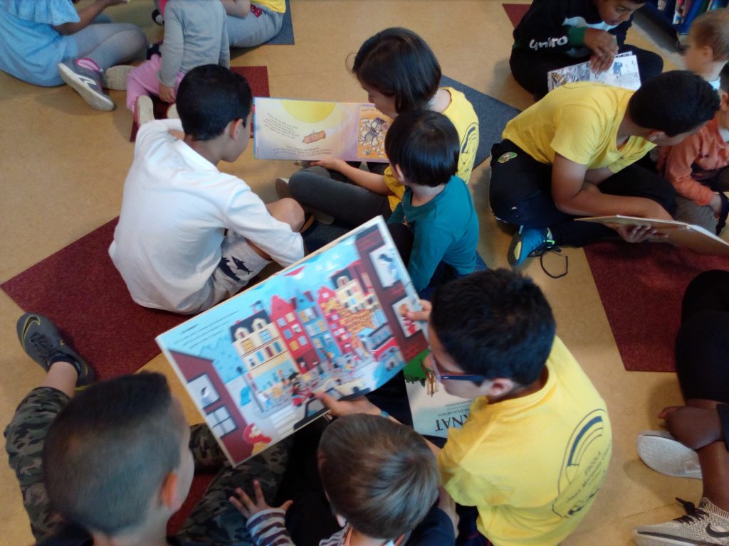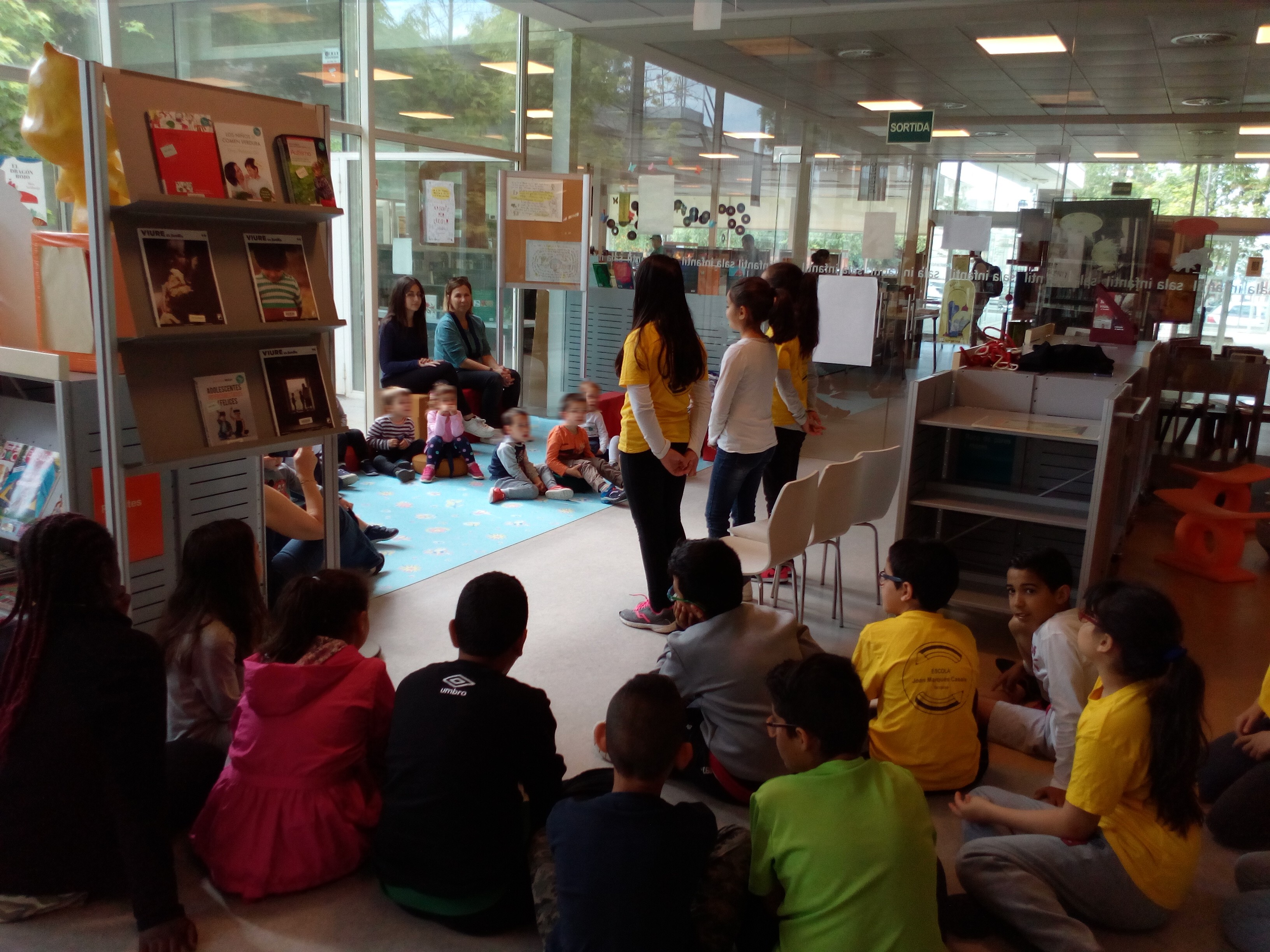 Ha estat fantàstic compartir una estona amb els nens i nenes de l’Oreneta. Els volem felicitar perquè s’han portat molt bé i perquè han estat molt atents als contes que els hem explicat.