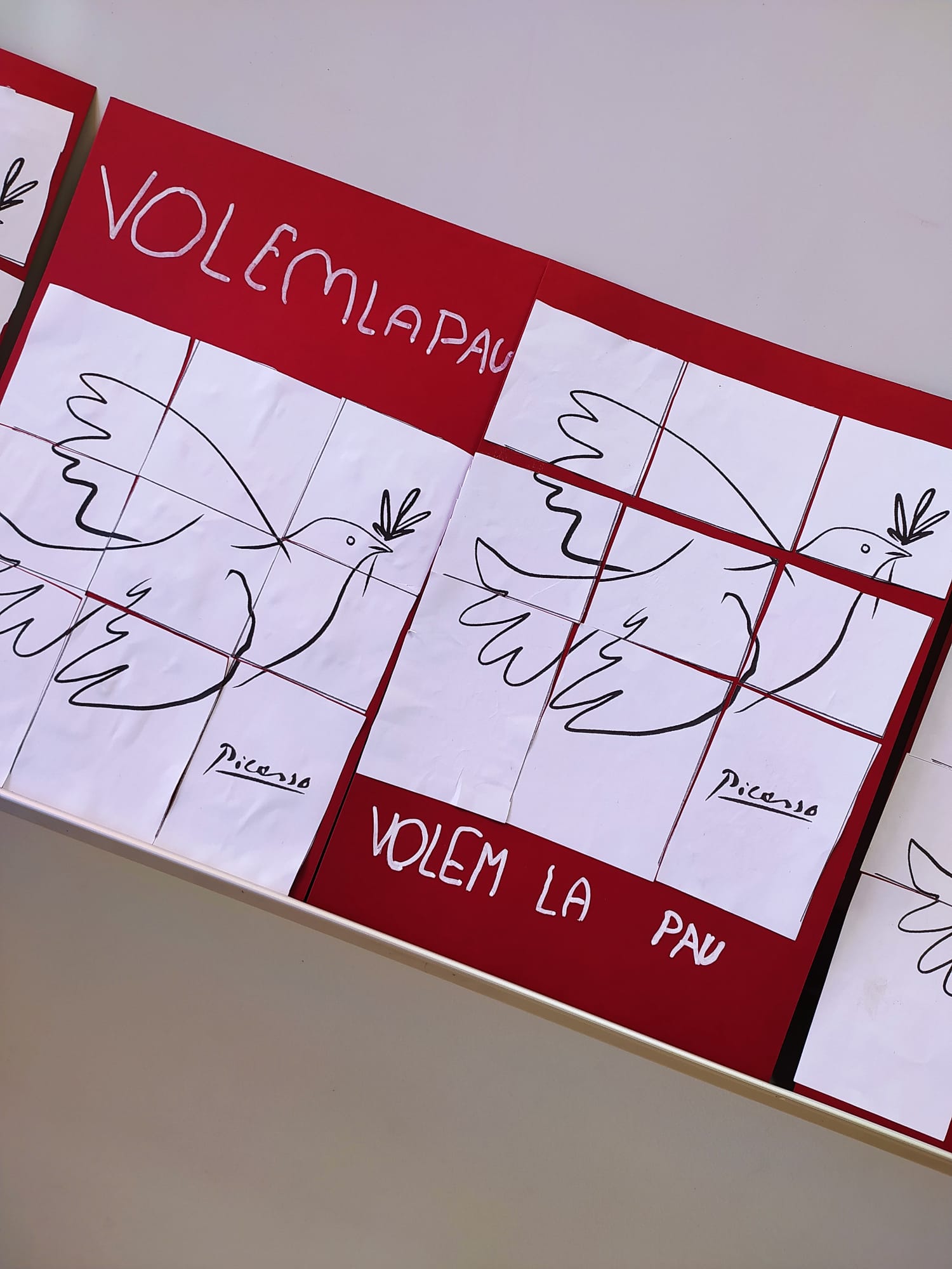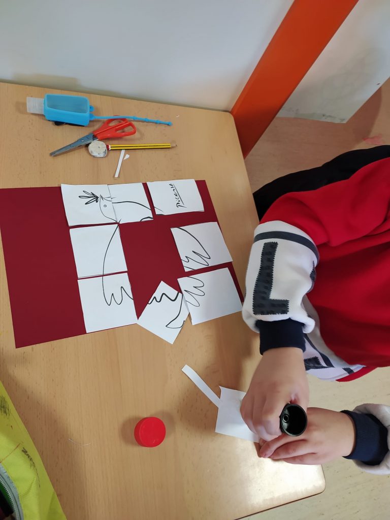 Avui, 30 de gener, és el DENIP (Dia Escolar de la No violència i la Pau). Per això, al llarg d’aquesta setmana hem fet moltes activitats a l’escola per a celebrar-ho. Hem explicat contes que parlaven de les guerres i de la pau, i hem conversat sobre com es poden resoldre els conflictes. També hem fet manualitats com ara decoracions del símbol de la pau, trencaclosques tot formant el colom de la pau, hem donat color al quadre de Pablo Picasso (El Guernica)…