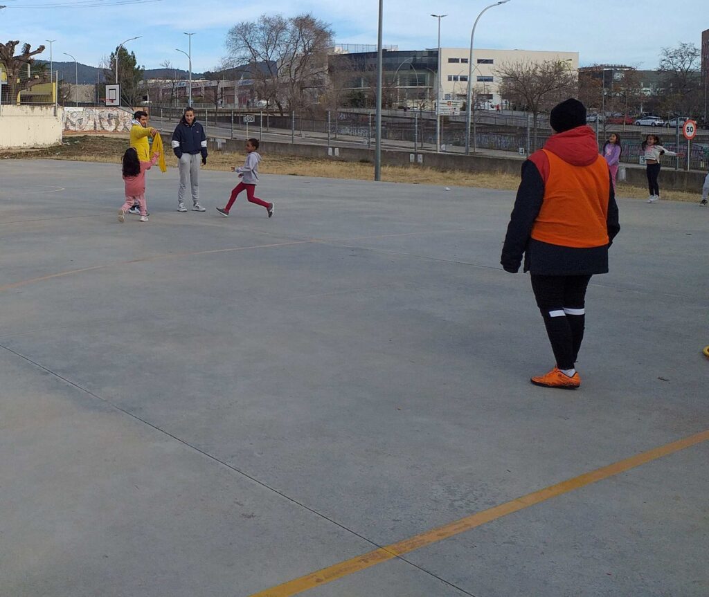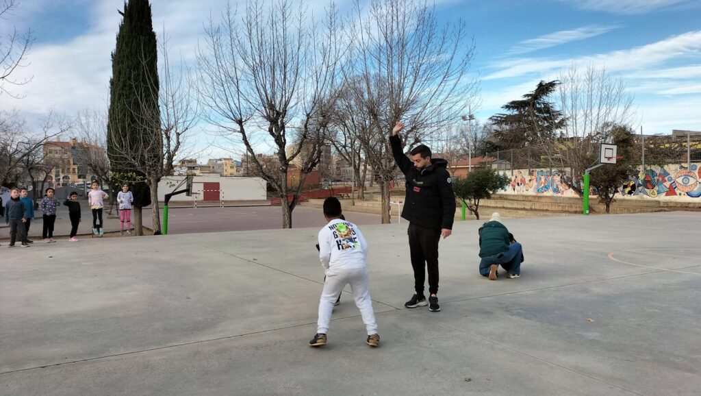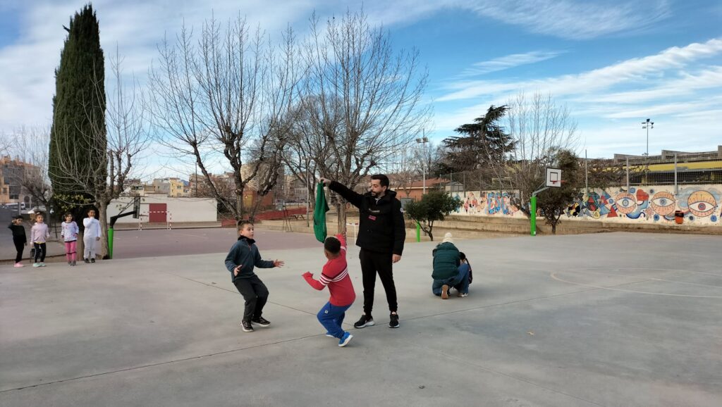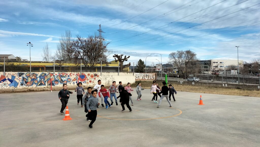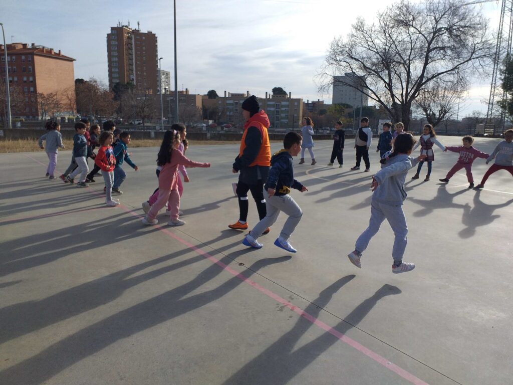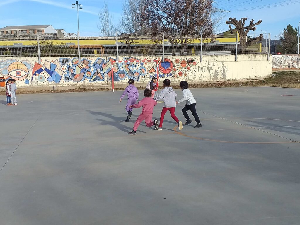 Aquesta setmana les nenes i els nens de 1r han gaudit de l’activitat “Jocs de pati” organitzada pel Consell Comarcal. Els monitors que han vingut a l’escola els han ensenyat diferents jocs, als quals poden jugar a les estones de pati. Alguns d’ells ja els coneixien, perquè hi juguen a Educació Física. Han jugat al joc de les cadires amb aros, al joc del mocador, a fer paquets, a l’aranya peluda… i s’ho han passat d’allò més bé.