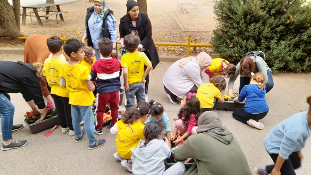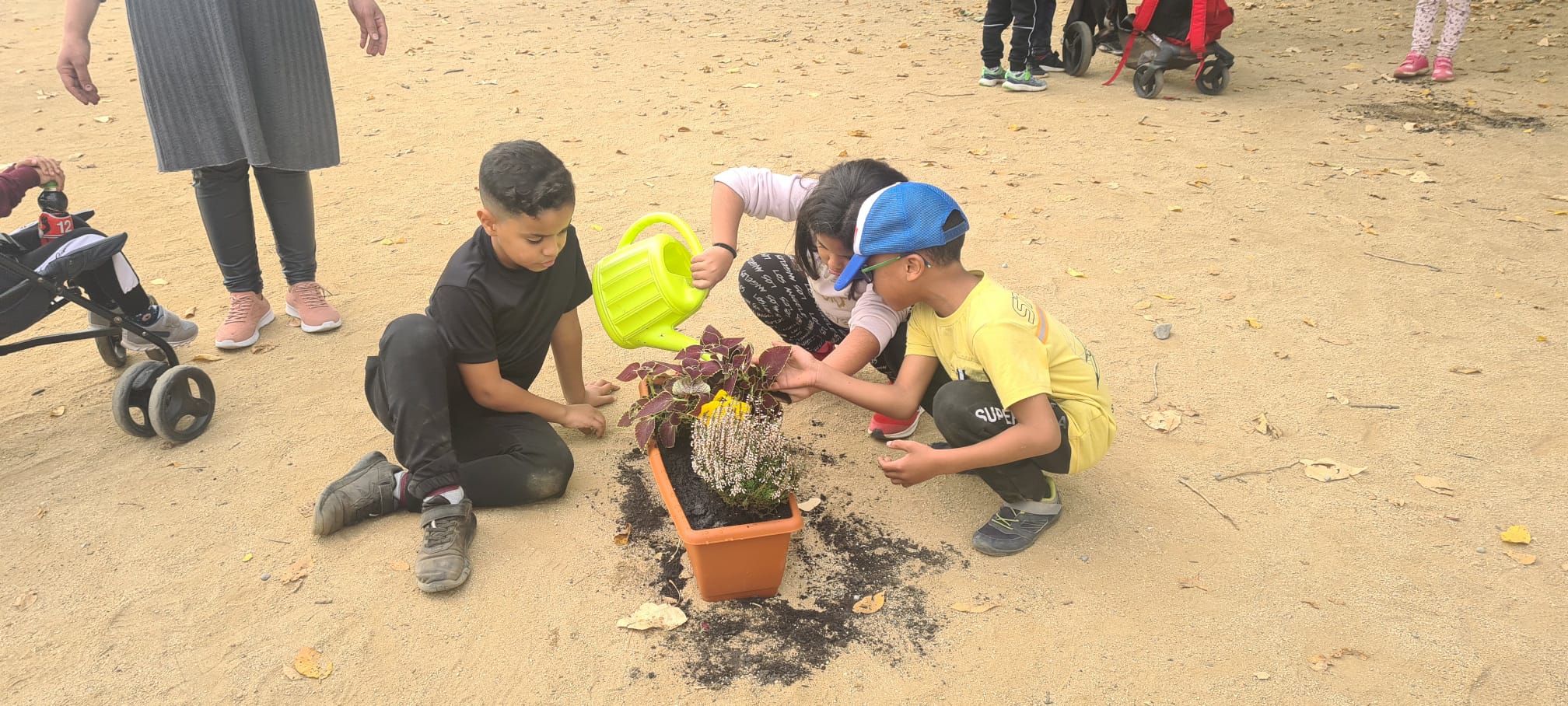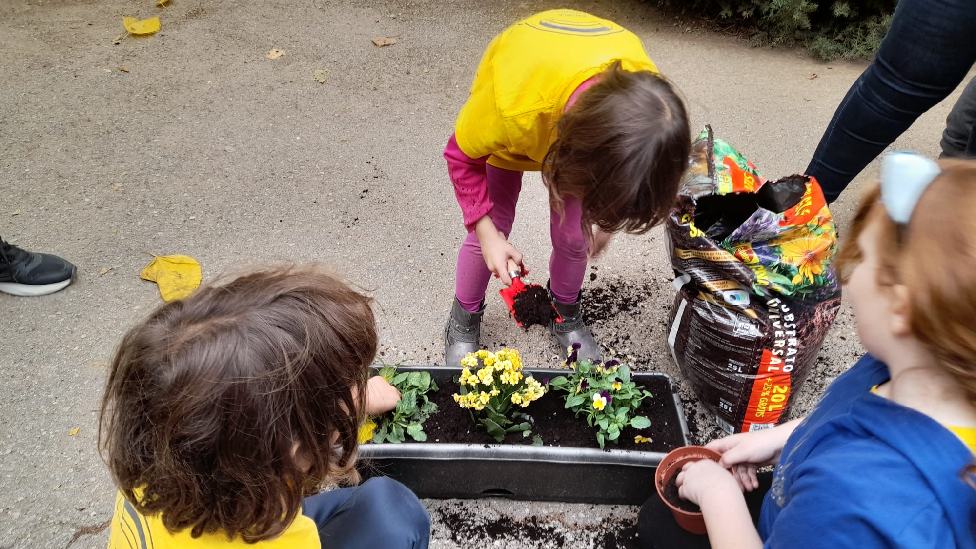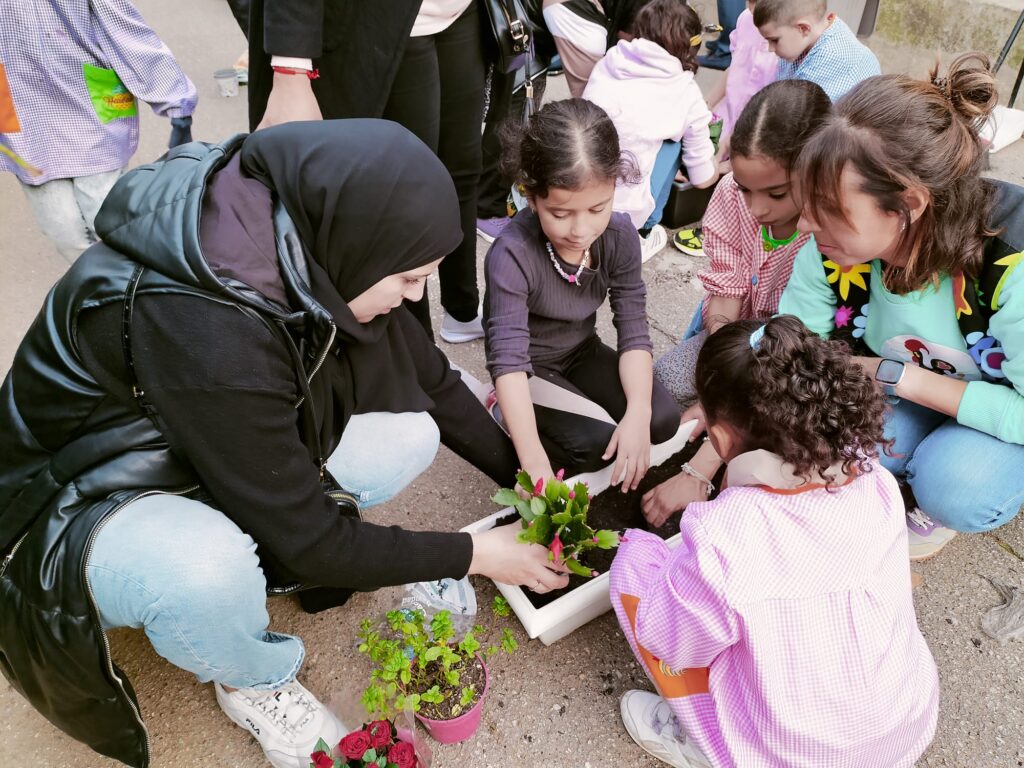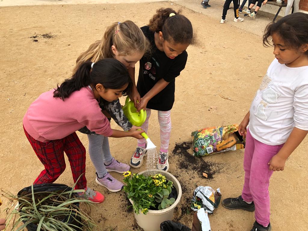 Fa uns dies les mestres de la Comunitat de Mitjans vam demanar a les famílies la seva participació portant una planta a l’escola. Aquesta tarda les nenes i els nens de 1r, 2n i 3r han sortit al pati a trasplantar aquestes plantes en jardineres. Per això, han vingut unes quantes mares i pares a ajudar-nos. També han entrat les famílies a les classes per ajudar en alguns treballs manuals.