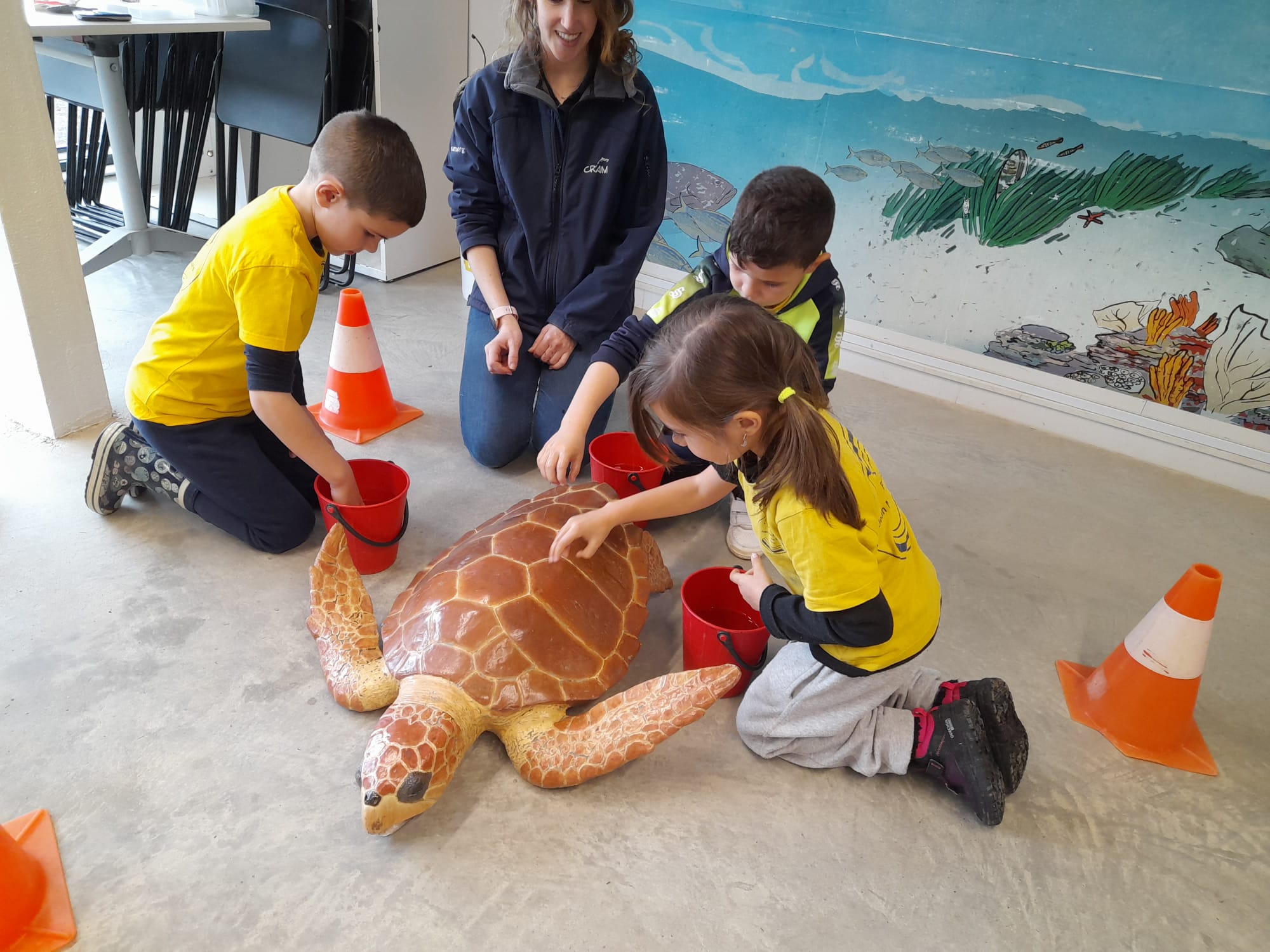 Aquesta setmana els nens i les nenes de la Comunitat de Mitjans hem anat a visitar el CRAM (Centre de Recuperació d’Animals Marins). Allà hem pogut aprendre i descobrir com ajudar als animals marins del mar Mediterrani. Hem après que el més important és que els nostres residus no arribin al seu hàbitat, què cal fer si trobes un animal ferit o malalt i també hem après la gran diversitat d’animals que viuen al mar. Ens ha plogut, sí, però també ens ho hem passat molt bé.