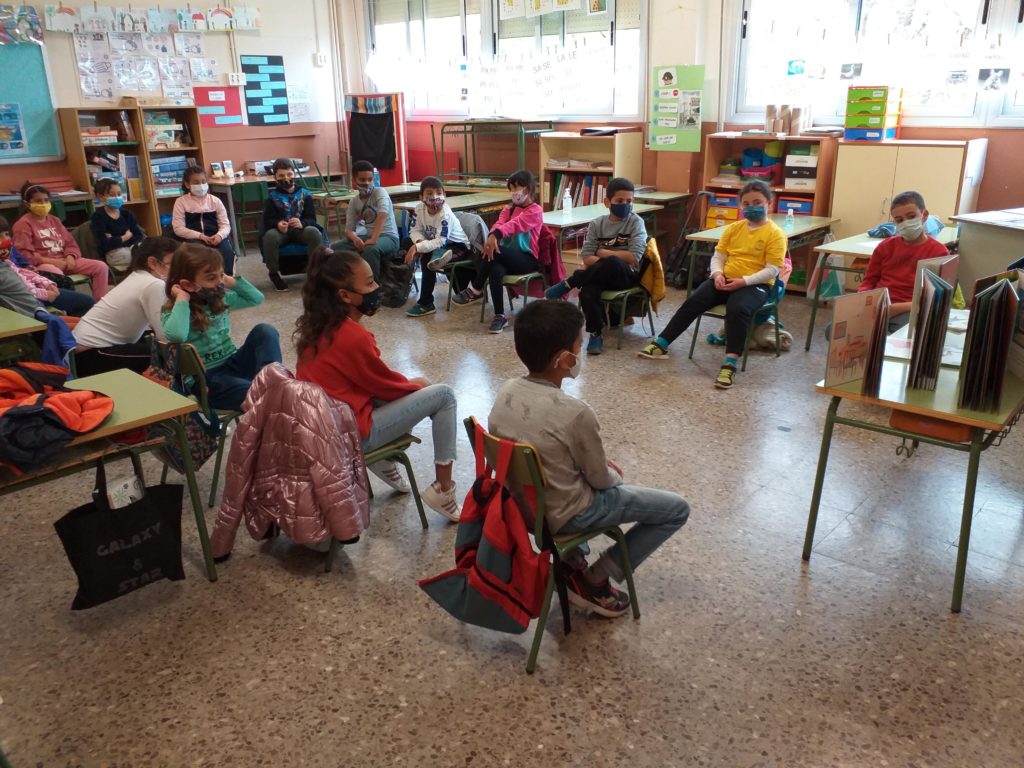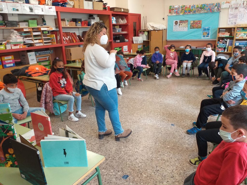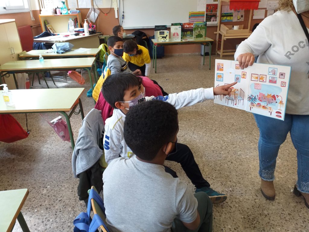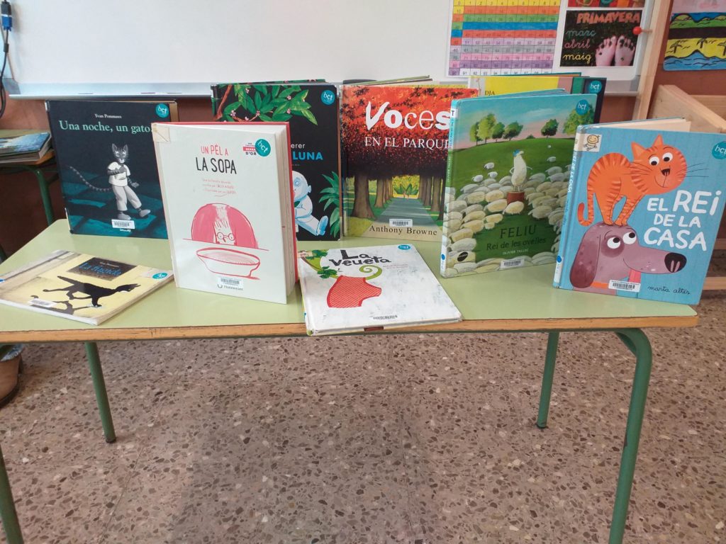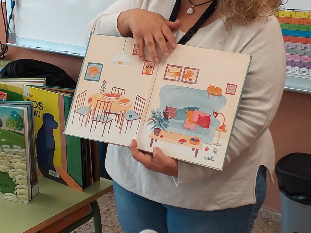 Aquesta setmana els alumnes de 2n hem rebut la visita de la Bea de la Biblioteca del Districte 6. Ens ha portat molts llibres i ens n’ha ensenyat alguns. Hem vist que hi ha molts tipus de llibres i també que hi ha llibres que no tenen text, només il·lustració. Igual que el conte que havíem treballat a l’aula per Sant Jordi, “Endevina qui fa què”.