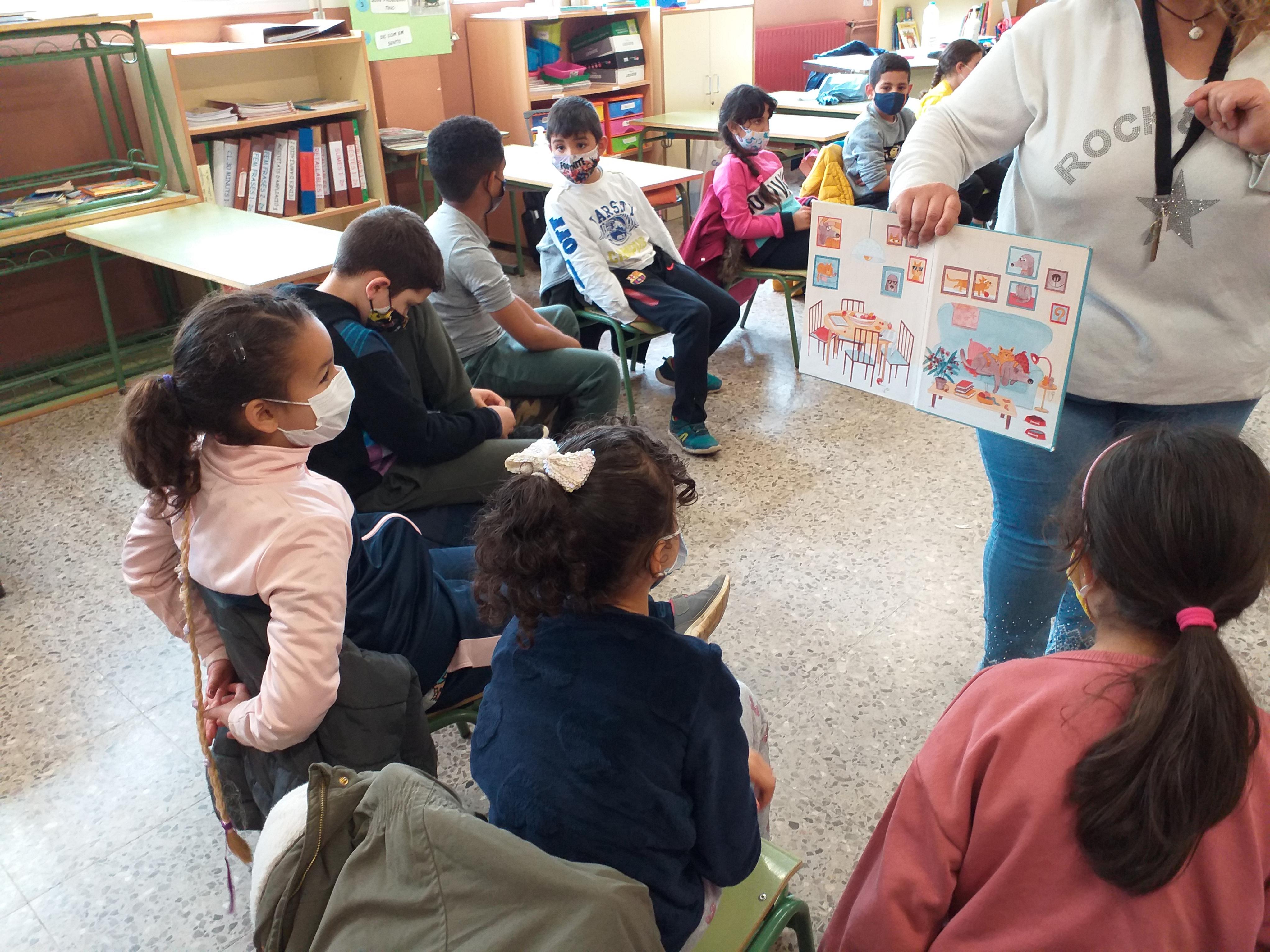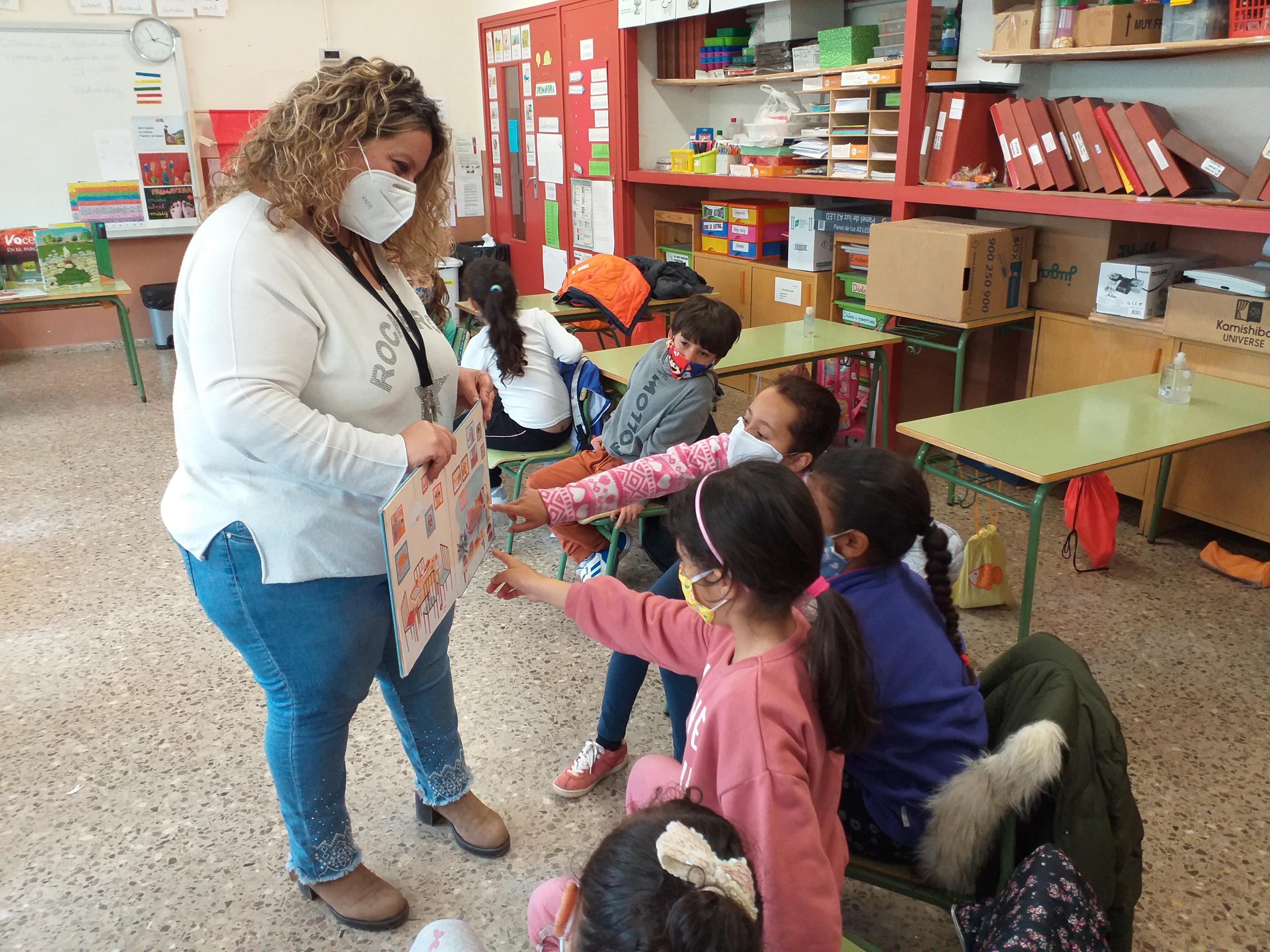 Aquesta setmana els alumnes de 2n hem rebut la visita de la Bea de la Biblioteca del Districte 6. Ens ha portat molts llibres i ens n’ha ensenyat alguns. Hem vist que hi ha molts tipus de llibres i també que hi ha llibres que no tenen text, només il·lustració. Igual que el conte que havíem treballat a l’aula per Sant Jordi, “Endevina qui fa què”.