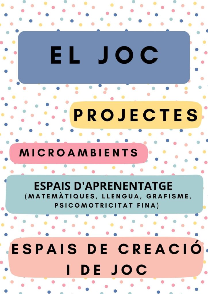 El joc és la base de tots els aprenentatges. A través del joc lliure, simbòlic, de construcció i de moviment, els infants desenvolupen el llenguatge, el pensament, les emocions i les relacions socials.