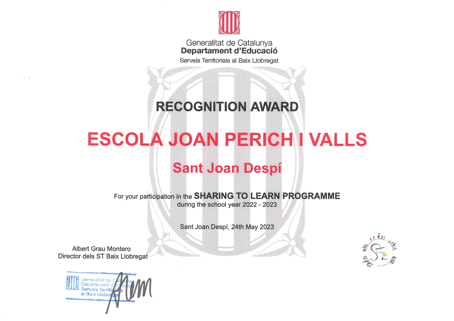 Els infants de 1r i 2n de la nostra escola participen en el Programa SHARING TO LEARN del Departament d’Educació.