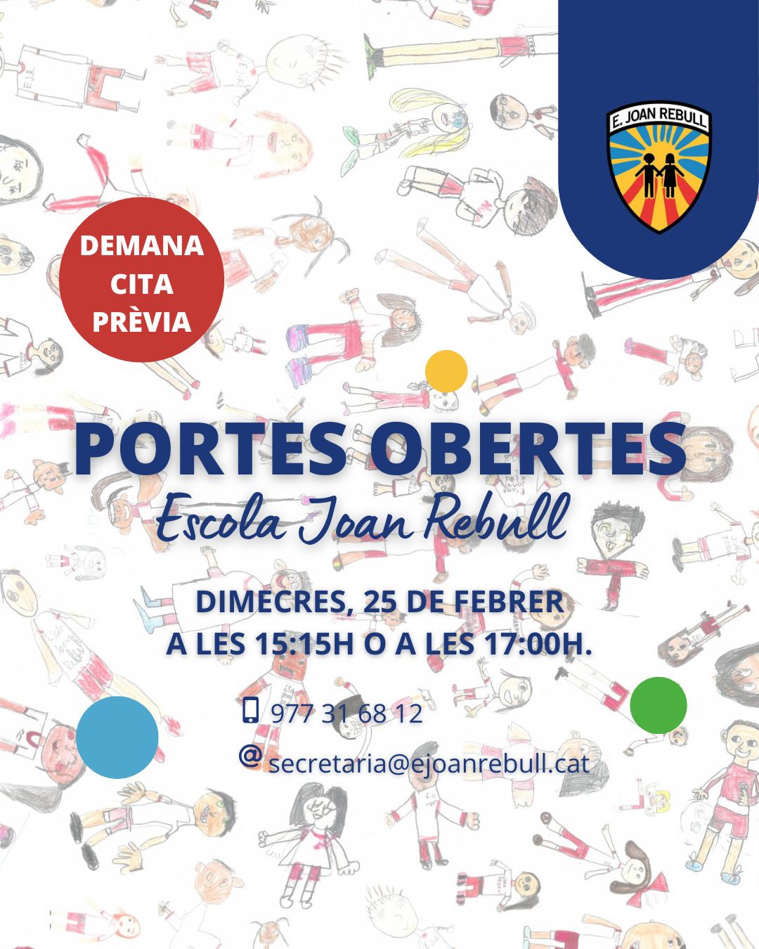 Dimecres 25 de febrer, portes obertes a l’Escola Joan Rebull. Especialment adreçades a famílies amb infants que s’incorporaran al centre el proper curs, però obertes a tothom qui vulgui conèixer millor l’escola. Podeu demanar cita trucant al centre o escrivint a secretaria@ejoanrebull.cat. Visites a les 15:15 i a les 17:00. Us animem a venir i […]