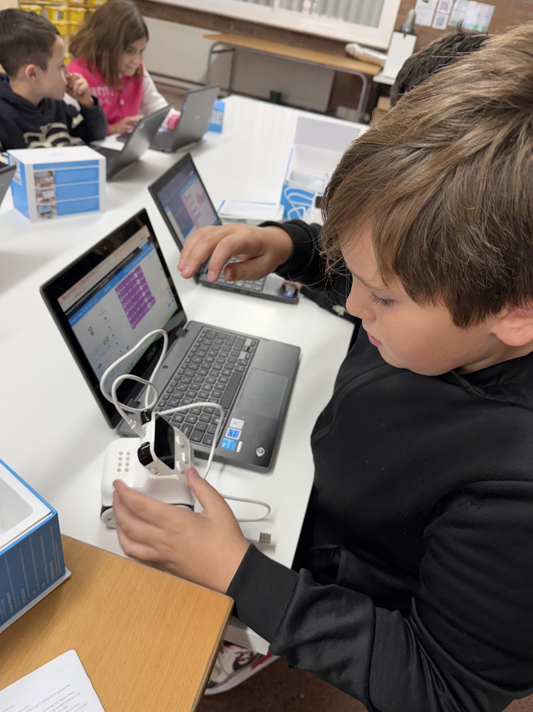 Aquesta setmana amb l’alumnat de 5è hem acabat els diferents reptes que hem treballat amb el kit Zum Junior a través de la plataforma Bitbloq. Els diferents reptes han sigut: barrera pàrquing, semàfor, girasol robòtic, discoteca interactiva, ruleta, dit de penaltis i detector d’intrusos. Hem pogut escoltar a la resta de companys i companyes què […]
