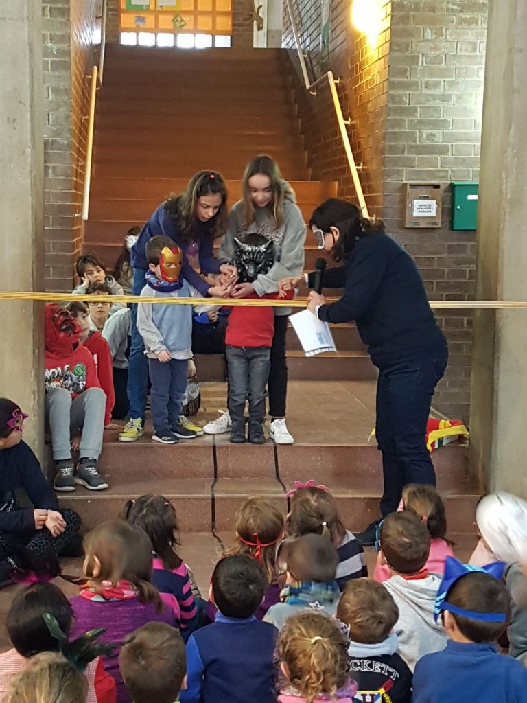 Aquest ha estat el pòster escollit pels/ per les delegats/des d’entre tots els presentats dels infants de Mitjans (1r, 2n i 3r de primària). L’autora del pòster és la Júlia Ribell de 2nB. Felicitats Júlia.