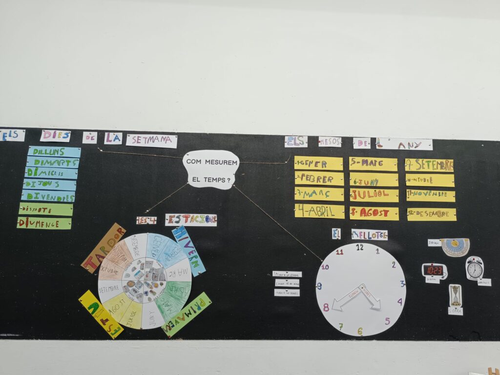 Els i les alumnes de 1r hem estat treballant: “Com podem mesurar el temps?”. Hem aprés que el temps el podem mesurar amb setmanes i que una setmana té 7 dies, que un any té 12 mesos, que tenim 4 estacions: primavera, estiu, tardor i hivern, i ens hem endinsat en el món del rellotge. […]