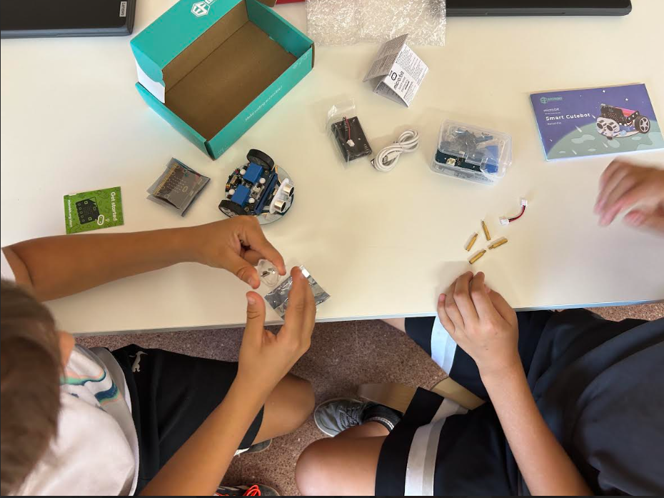 L’alumnat de 6è ja està treballant en el projecte de robòtica anomenat “Olimíades de robòtica”. En aquest projecte l’alumnat té l’oportunitat de descobrir el món de la robòtica utilitzant la placa micro:bit i el robot Cutebot (a partir d’ara, Cobi). Mitjançant una sèrie d’activitats progressives, l’alumnat ha anat aprenent els components de la placa micro:bit, l’entorn de programació MakeCode, i les funcionalitats del robot Cobi.