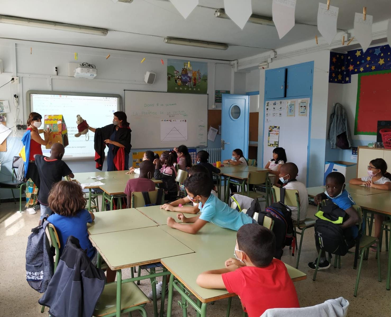 05/10/21Aquestes primeres setmanes de curs, estan sent molt productives pels nens i nenes de 2n, la classe de L’ Estel fugaç, ja què s’estan convertint en tot uns petits grans lectors. Estan realitzant activitats molt interessants de la mà d’una mascota, que és l’encarregada de presentar les activitats, i de les mestres, disfressades de superlectores, que faran gaudir als alumnes mentre aprenen i gaudeixen llegint.