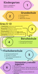 • Combinen els tres itineraris clàssics (Hauptschule, Realschule i Gymnasium) dins d’un mateix centre.