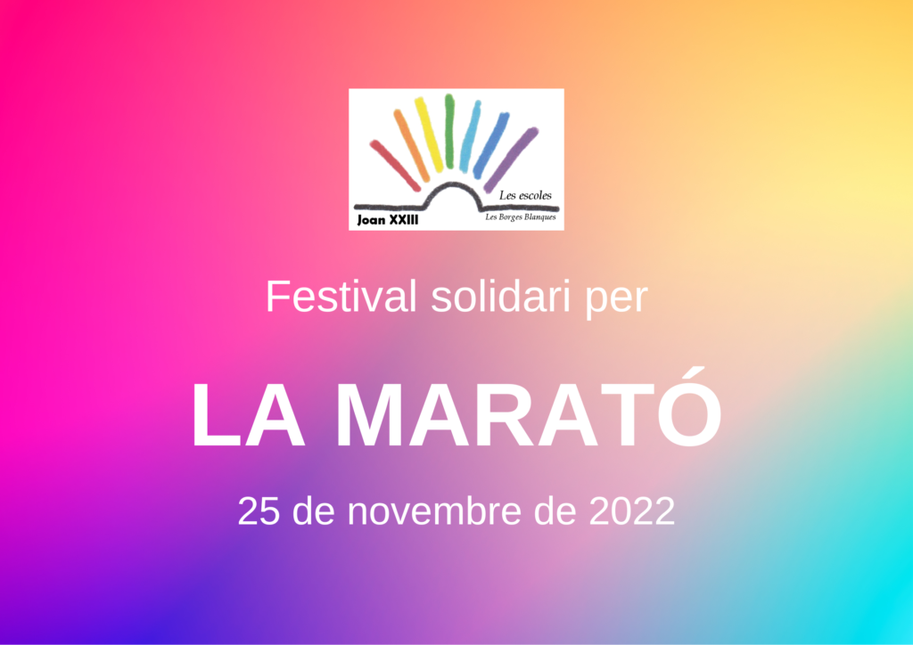 FESTIVAL DE LA MARATÓ 2022 admin30/11/22 El dia 25 de novembre es va realitzar el Festival per la Marató. Entre tota la comunitat educativa va sortir un espectacle rodó! Podeu veure el vídeo clicant a la imatge següent: