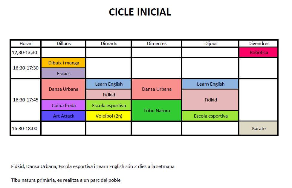 Proposta d'activitats extraescolars 25-26 ENGRESKA'T