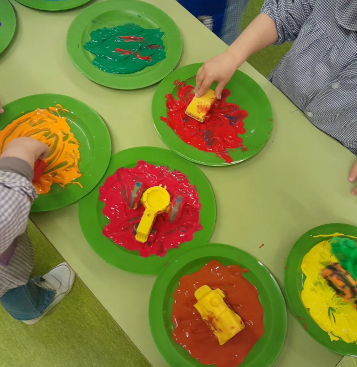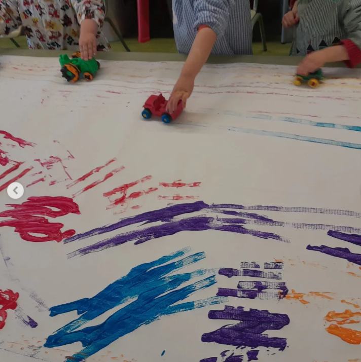 17/02/25Els nens i nenes d’I3 estem fent el projecte de la granja i una de les activitats, súper divertides, va ser estampar les roderes dels tractors amb pintura. Ens va encantar i vam gaudir-ne molt!