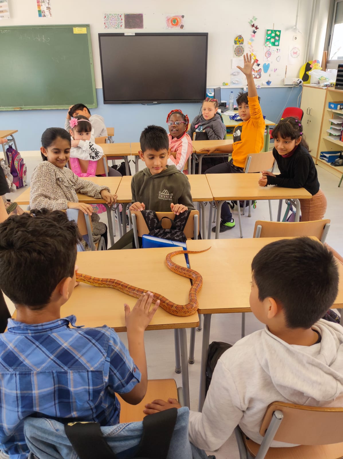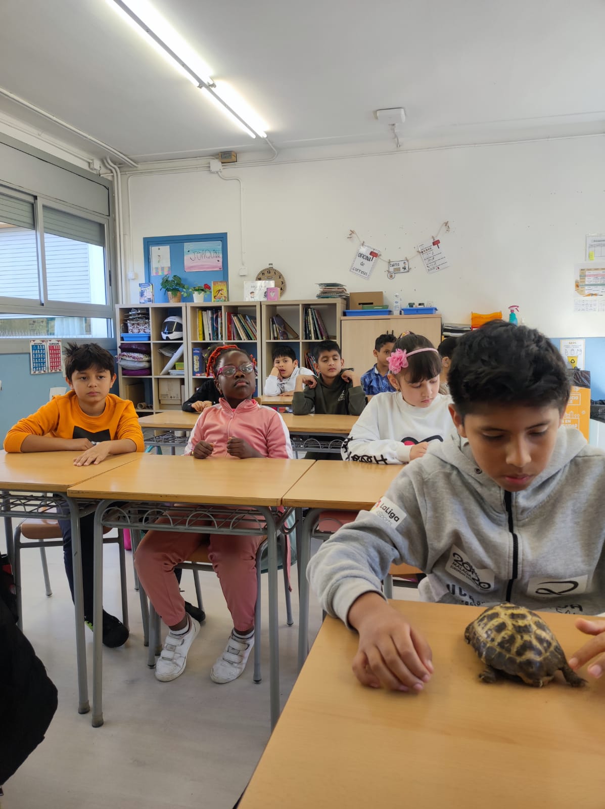 A la classe de 3r vam fer una activitat molt especial relacionada amb els animals. Vam treballar diferents classificacions, com ara si són mamífers, ovípars o ovovivípars, i també el tipus d’alimentació que tenen: herbívors, carnívors o omnívors. Ens van visitar uns experts en cura d’animals, que ens van portar alguns exemplars per observar. Vam poder veure de prop una granota blava d’Austràlia, una tortuga terrestre, una tòrtora, un gecko lleopard, un conill i una serp del blat de moro. Ens van explicar com són aquests animals i quines atencions necessiten. Va ser una experiència molt enriquidora i ens ho vam passar molt bé mentre apreníem.