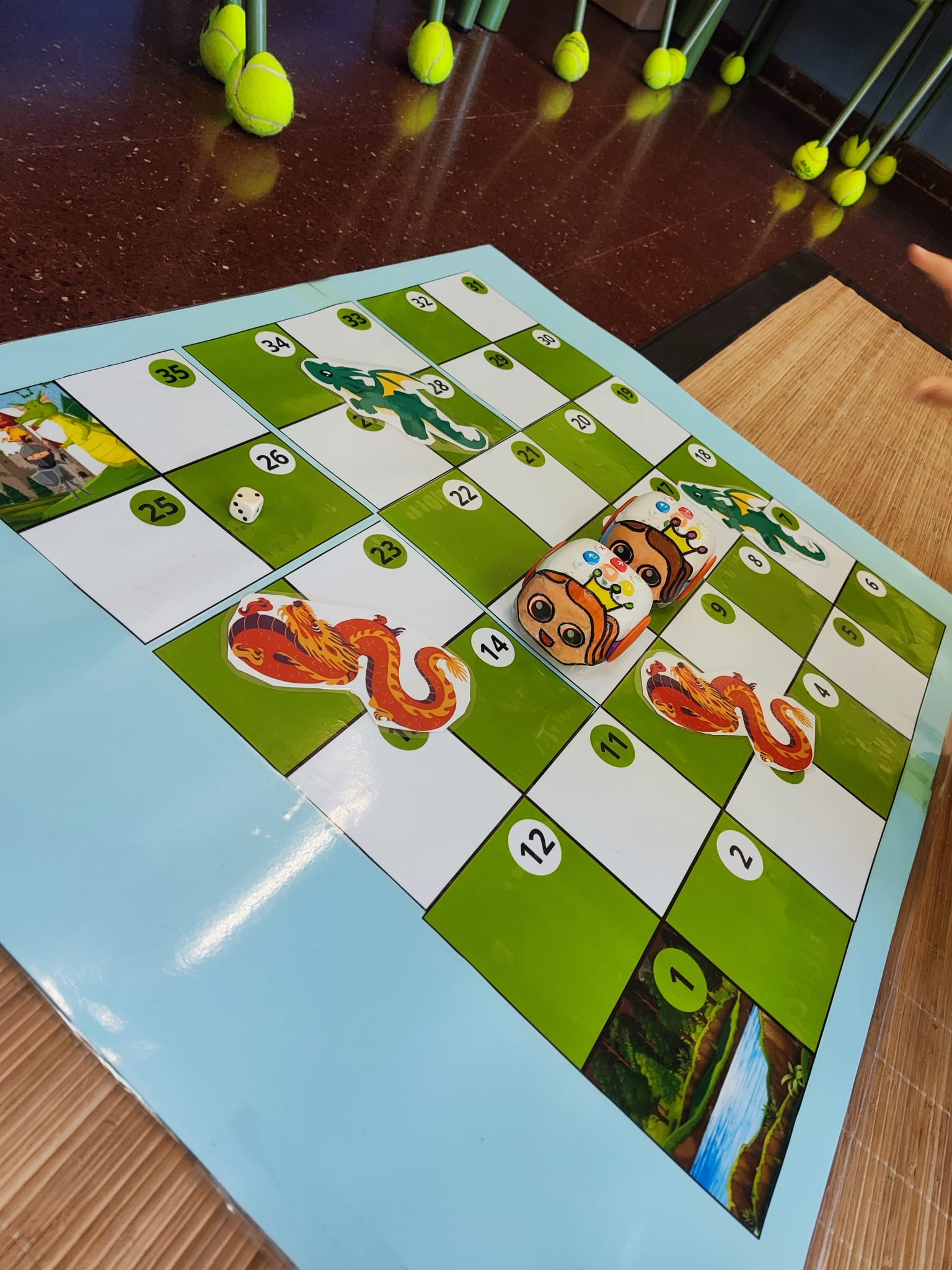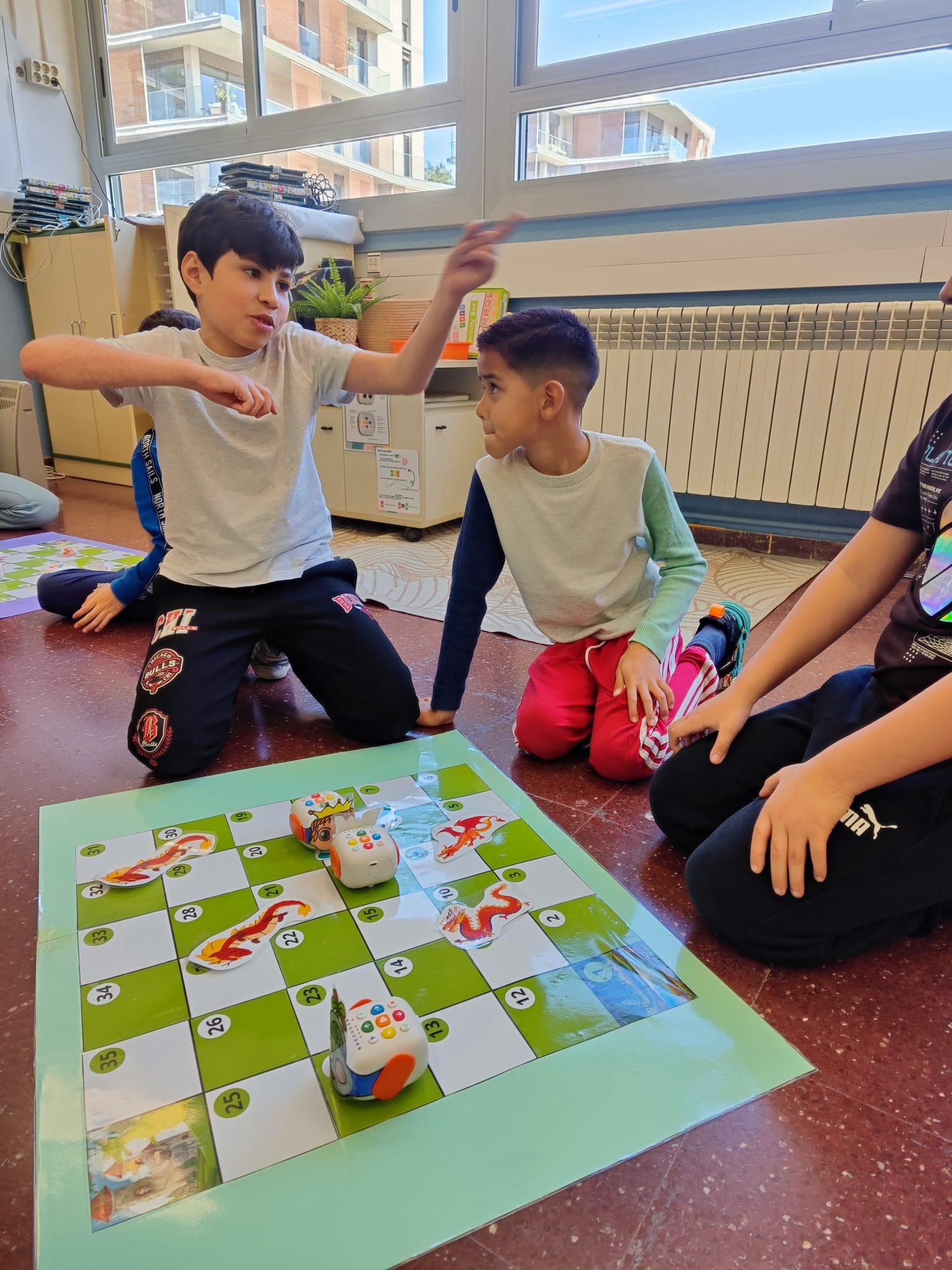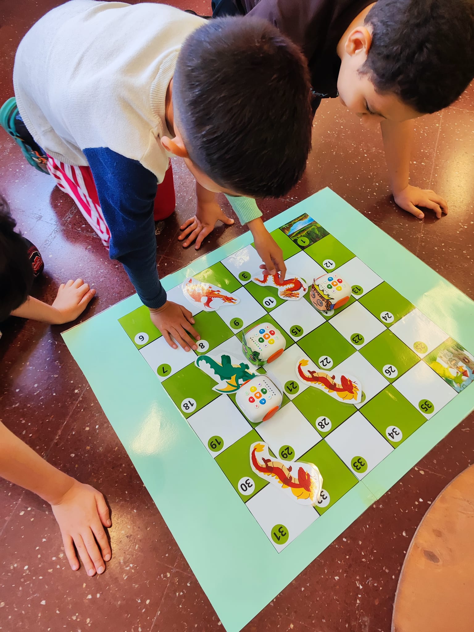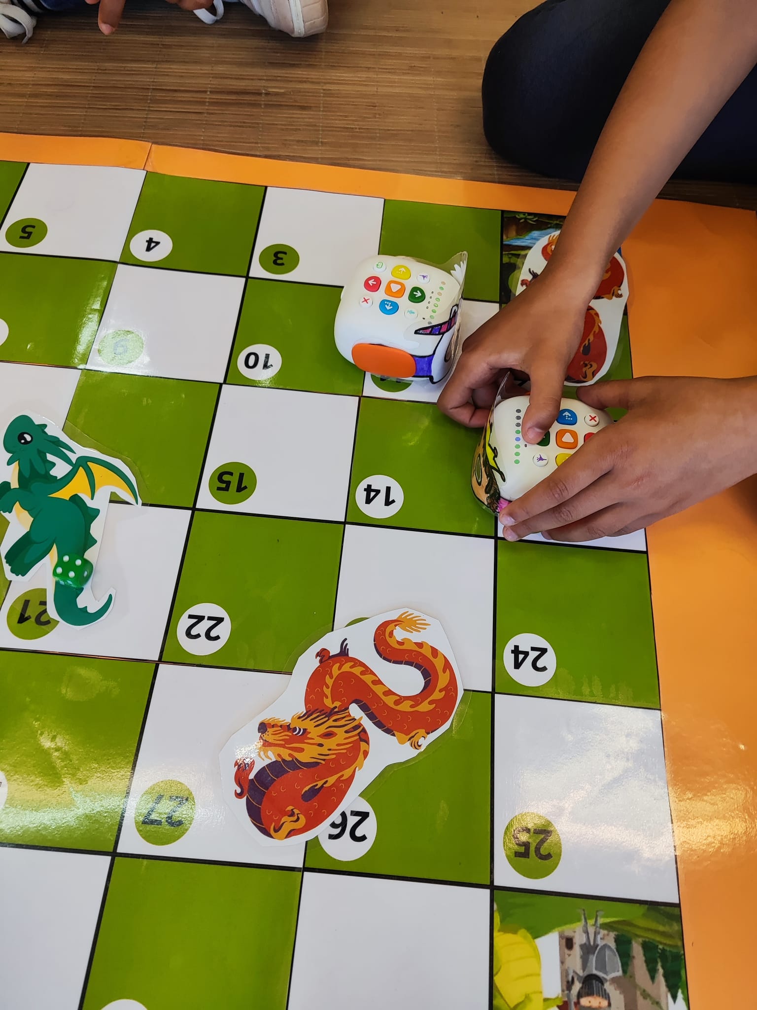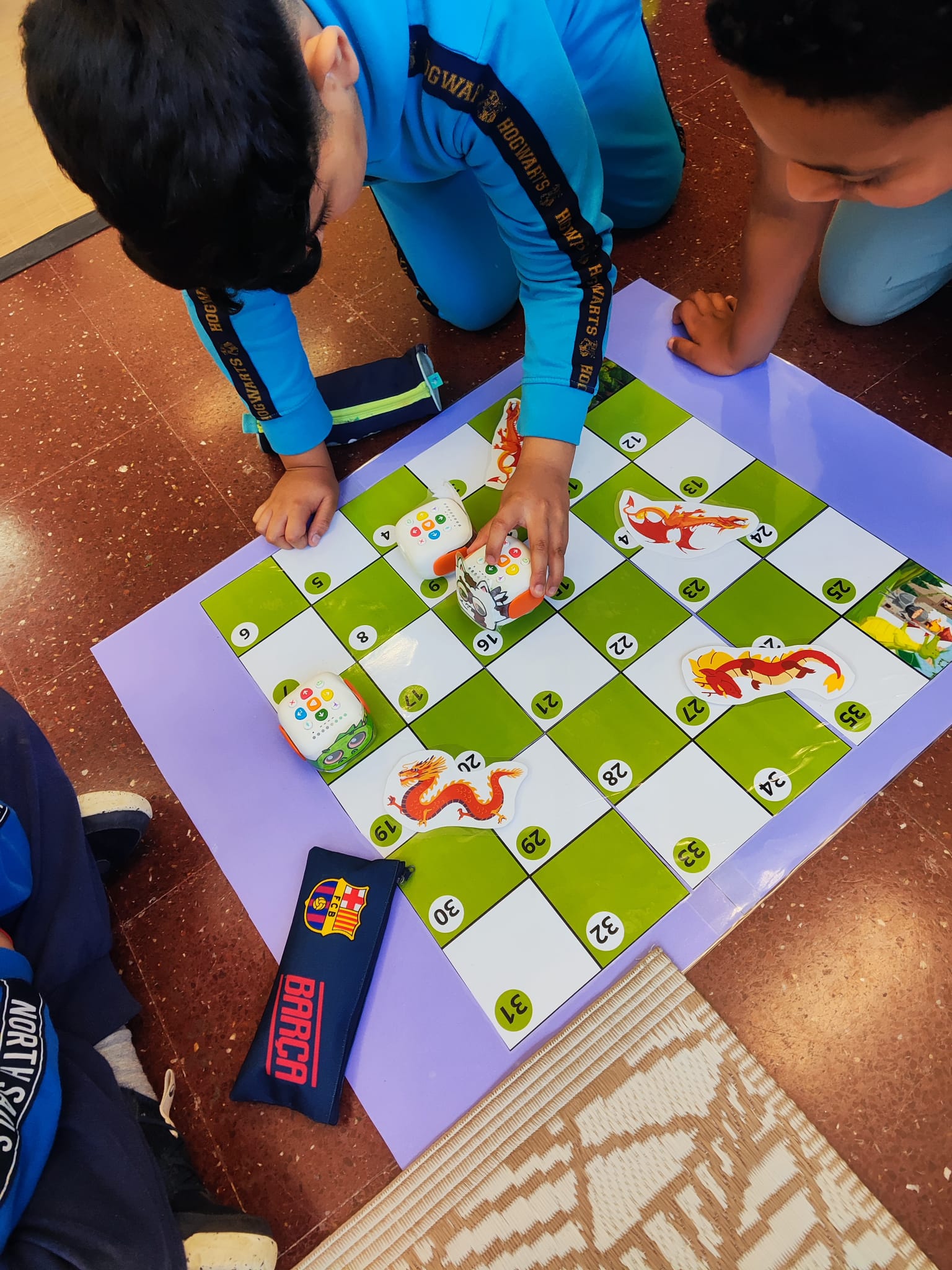Per celebrar Sant Jordi d’una manera original i divertida, a 4t hem treballat la llegenda amb robòtica. Hem fet servir el Tale-Bot sobre un taulell amb semblança del famós joc de taula de les serps, i l’hem programat perquè es mogui per l’escenari, representant el drac, la princesa, el cavaller i fins i tot un unicorn! Ens ho hem passat molt bé aprenent a programar i aprenent històries amb tecnologia.