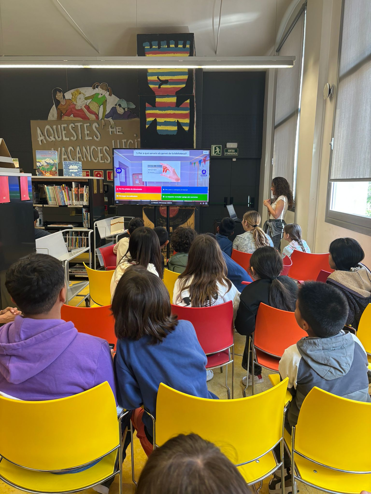 La jornada va començar amb una caminada des de l’escola fins a la biblioteca, on van ser rebuts pel personal amb una càlida benvinguda. Els alumnes van participar en una visita guiada per les diferents seccions de l’edifici i van aprendre com buscar llibres, com funciona el préstec i quines activitats s’hi poden fer, com tallers, contacontes i exposicions.